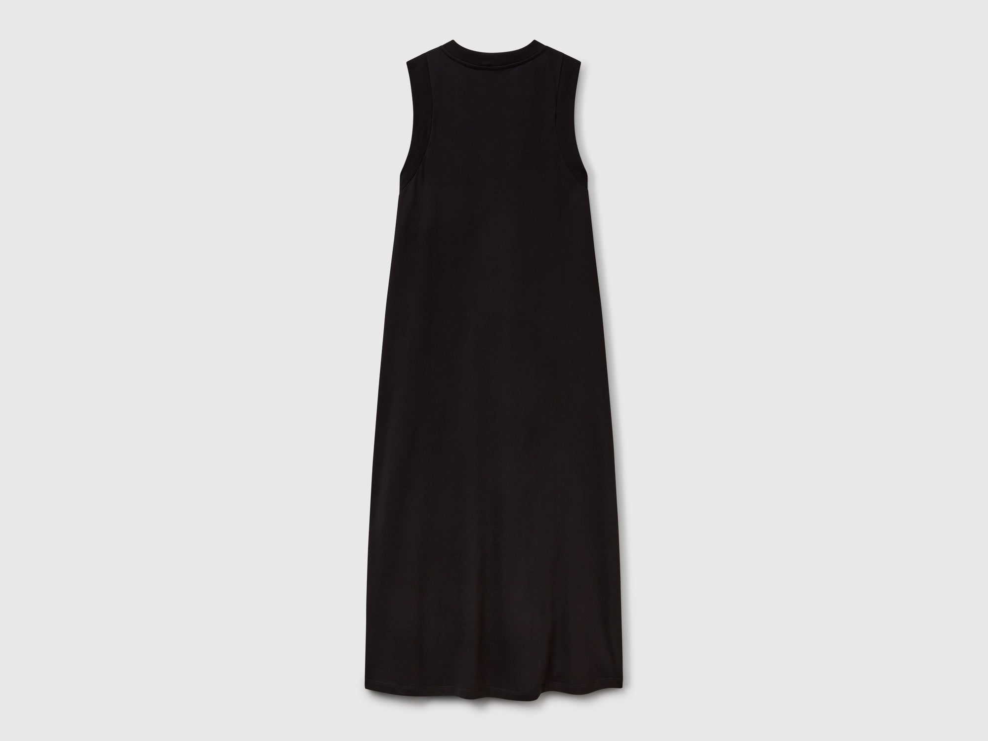 - Main features: Long sleeveless dress in soft, 100% cotton fabric with a textured feel. Round neckline and center front. Minimalist, feminine style, can also be worn with a belt. Heavyweight 100% cotton jersey; Stretch ribbed collar and armholes.
