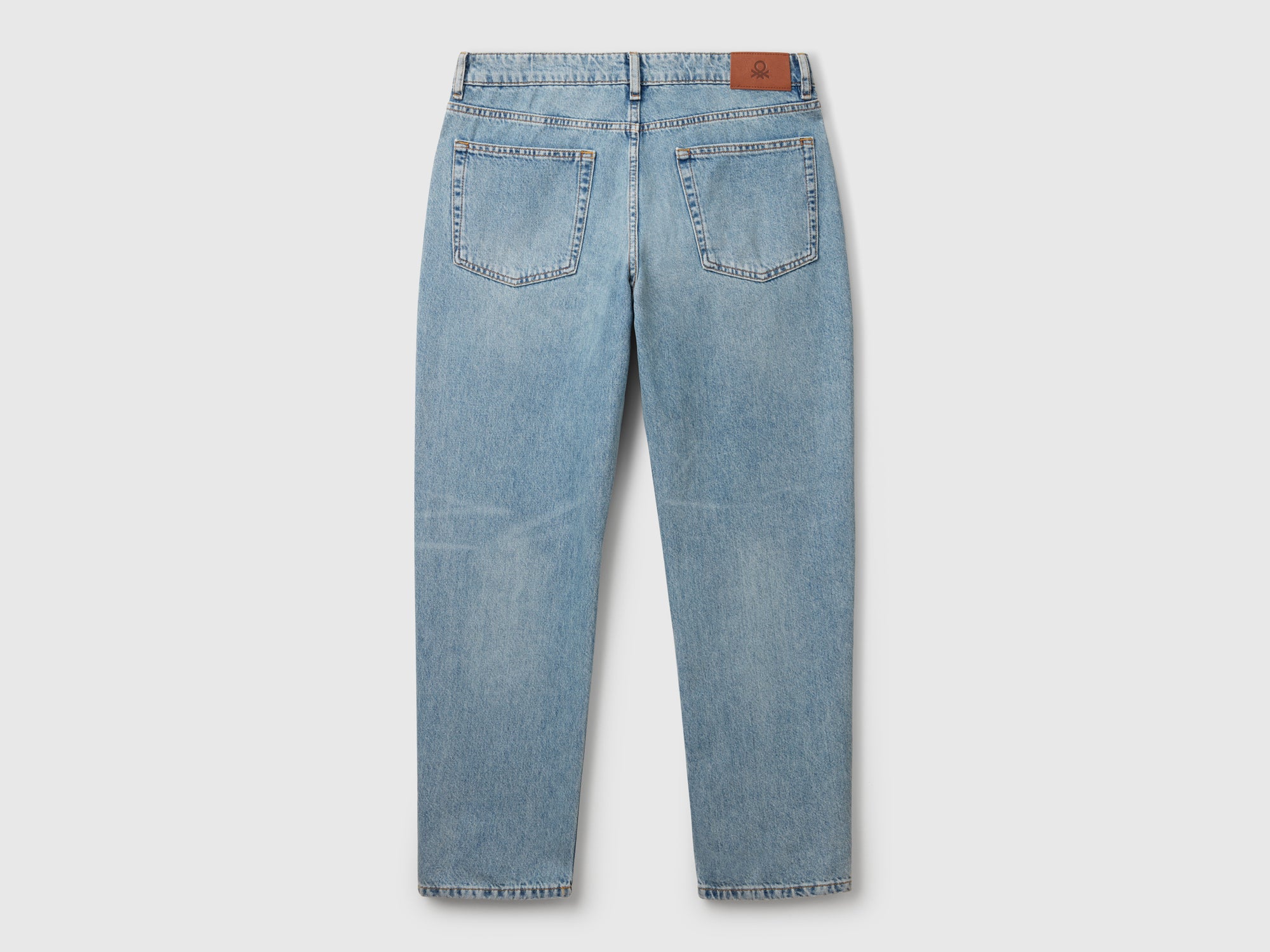 Pantaloni lunghi carrot fit in denim di puro cotone. Design a cinque tasche e pratica apertura frontale con zip e bottone. Un must-have del guardaroba casual.