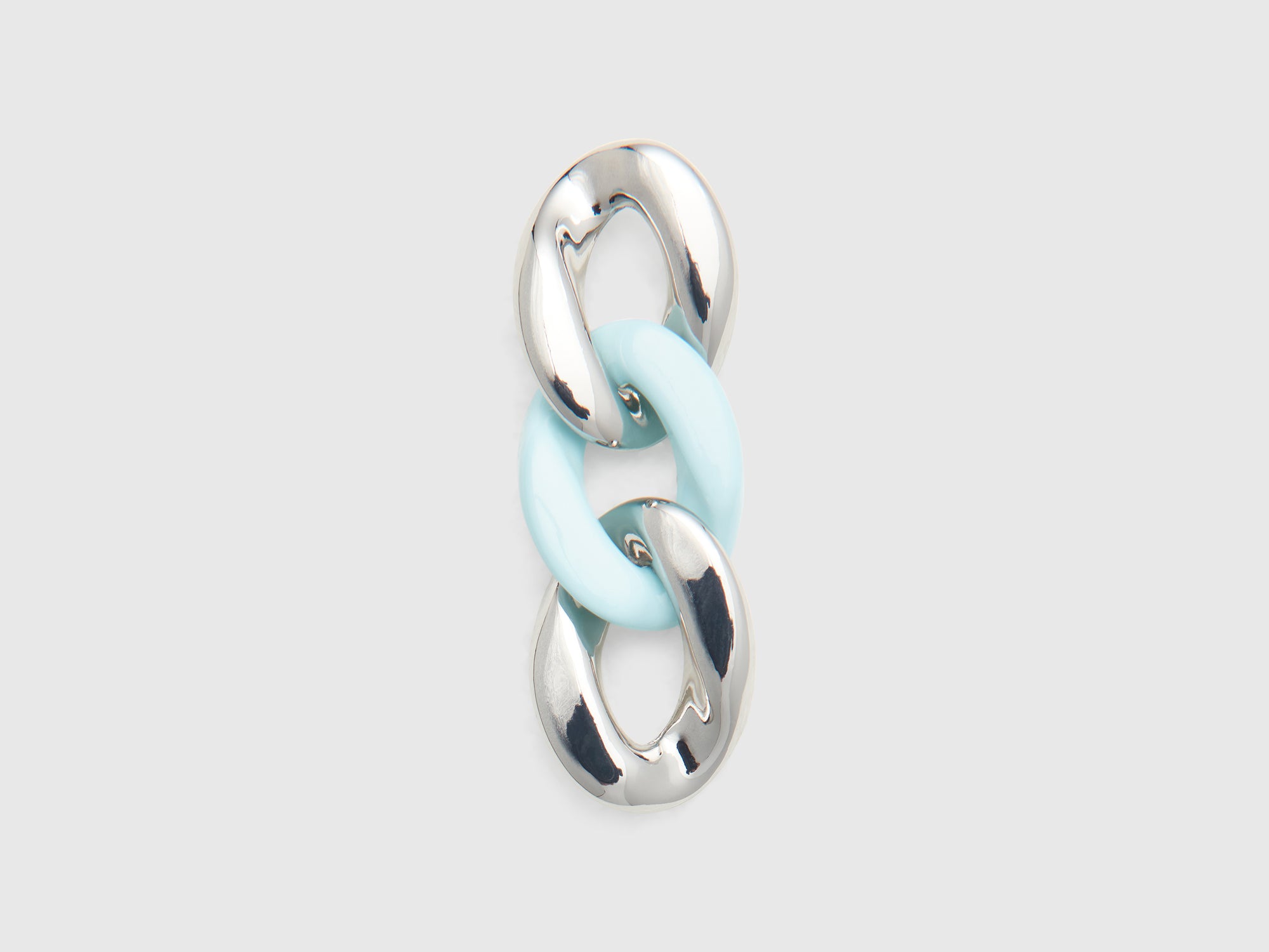 - Main features: Silver-tone metal drop earrings. Chain charms with aqua green enamel and a stud closure. A cool everyday accessory. Zinc, iron, and resin; nickel-free.