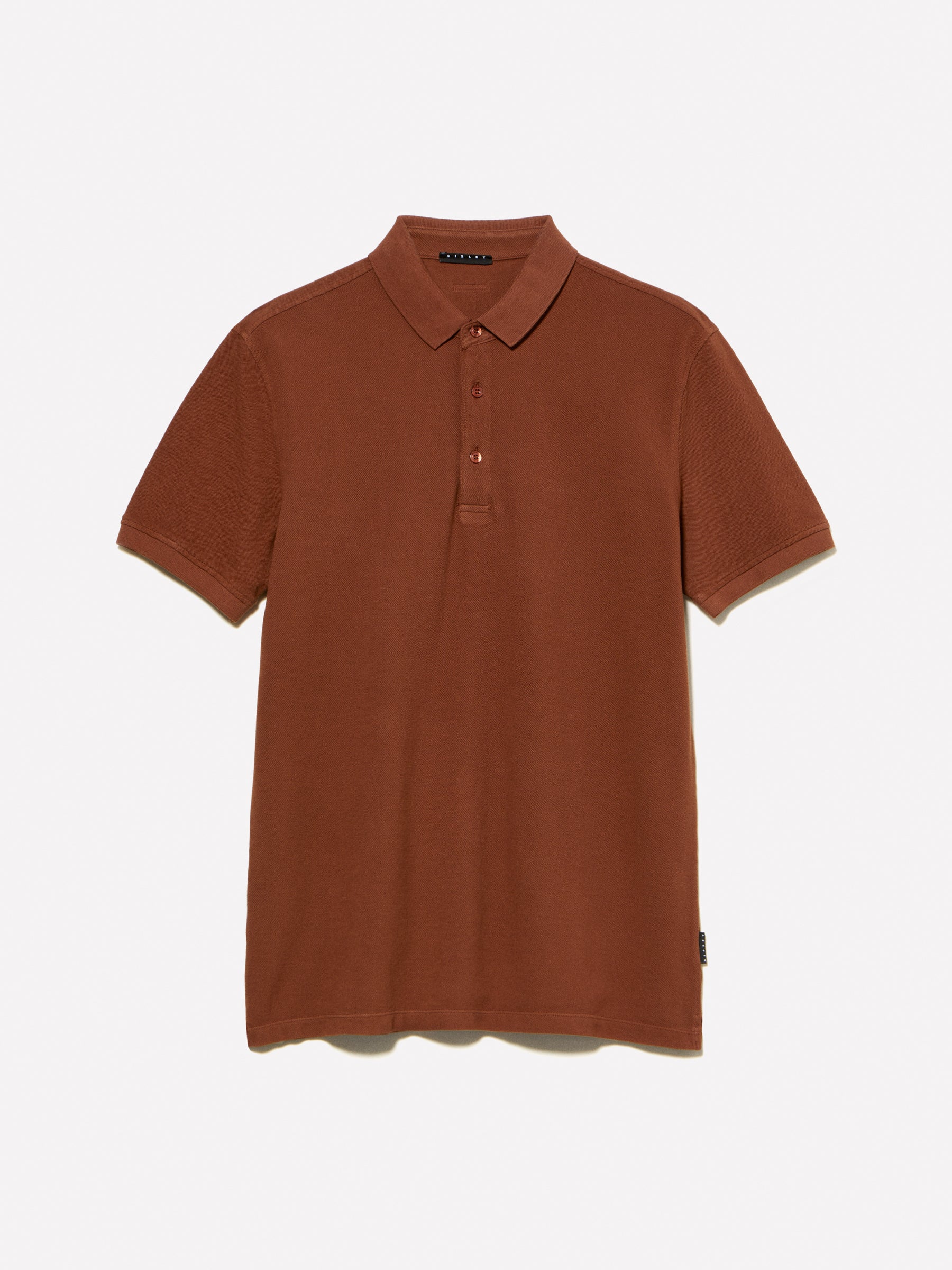 Dark brown polo shirt in 100% pique cotton. Collar, partial opening with buttons and short sleeves with soft shoulders. Item made with material containing at least 95% organic cotton.