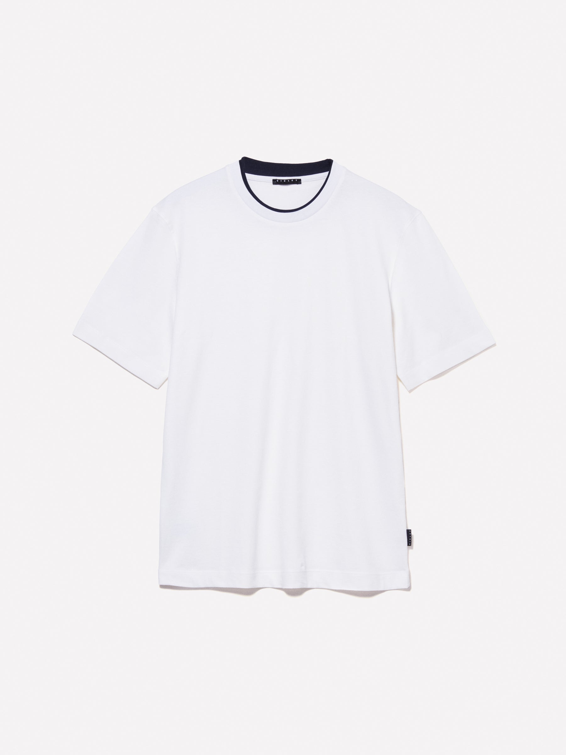 White regular fit T-shirt in 100% cotton. Round neck with contrast trim with a double-layer contrast raw-cut effect, and short sleeves with dropped shoulders. This product is made from 100% OCS - ICEA - TX - 611 certified organic cotton. Products certified to the Organic Content Standard (OCS) contain organic content that has been independently verified at each stage of the supply chain, from the recycler to the final product.