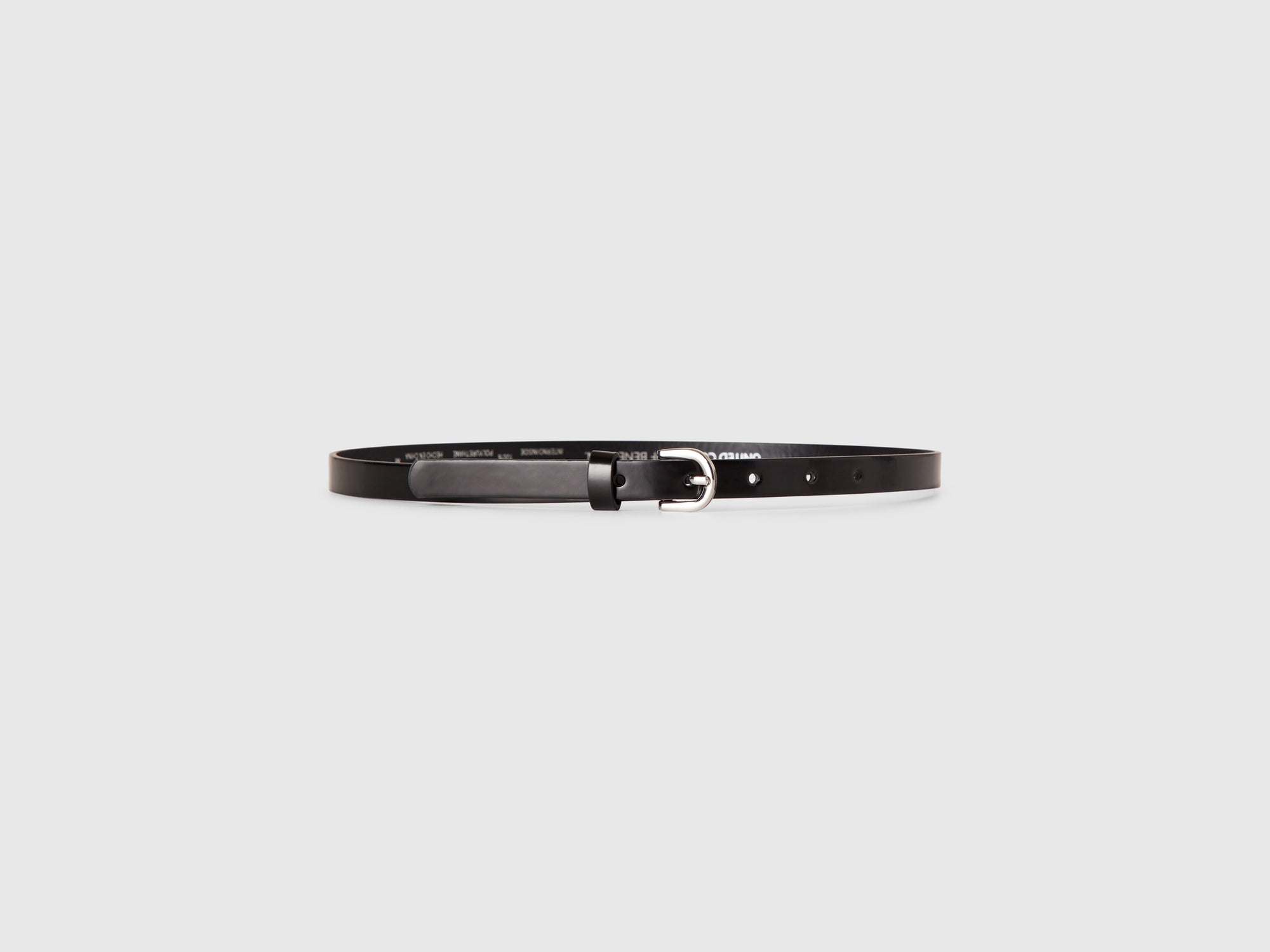 Cintura in tessuto spalmato lucido con fibbia in metallo. Perfetta per completare gli outfit quotidiani.