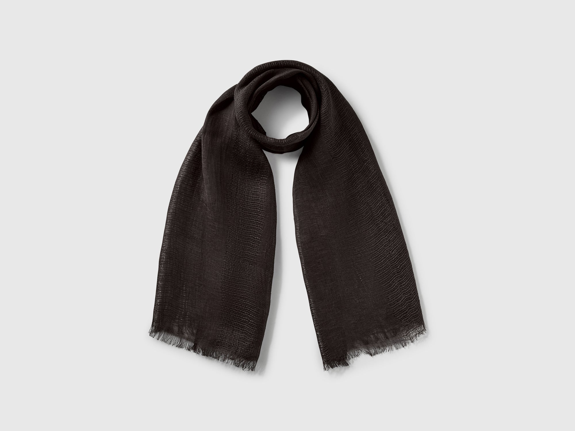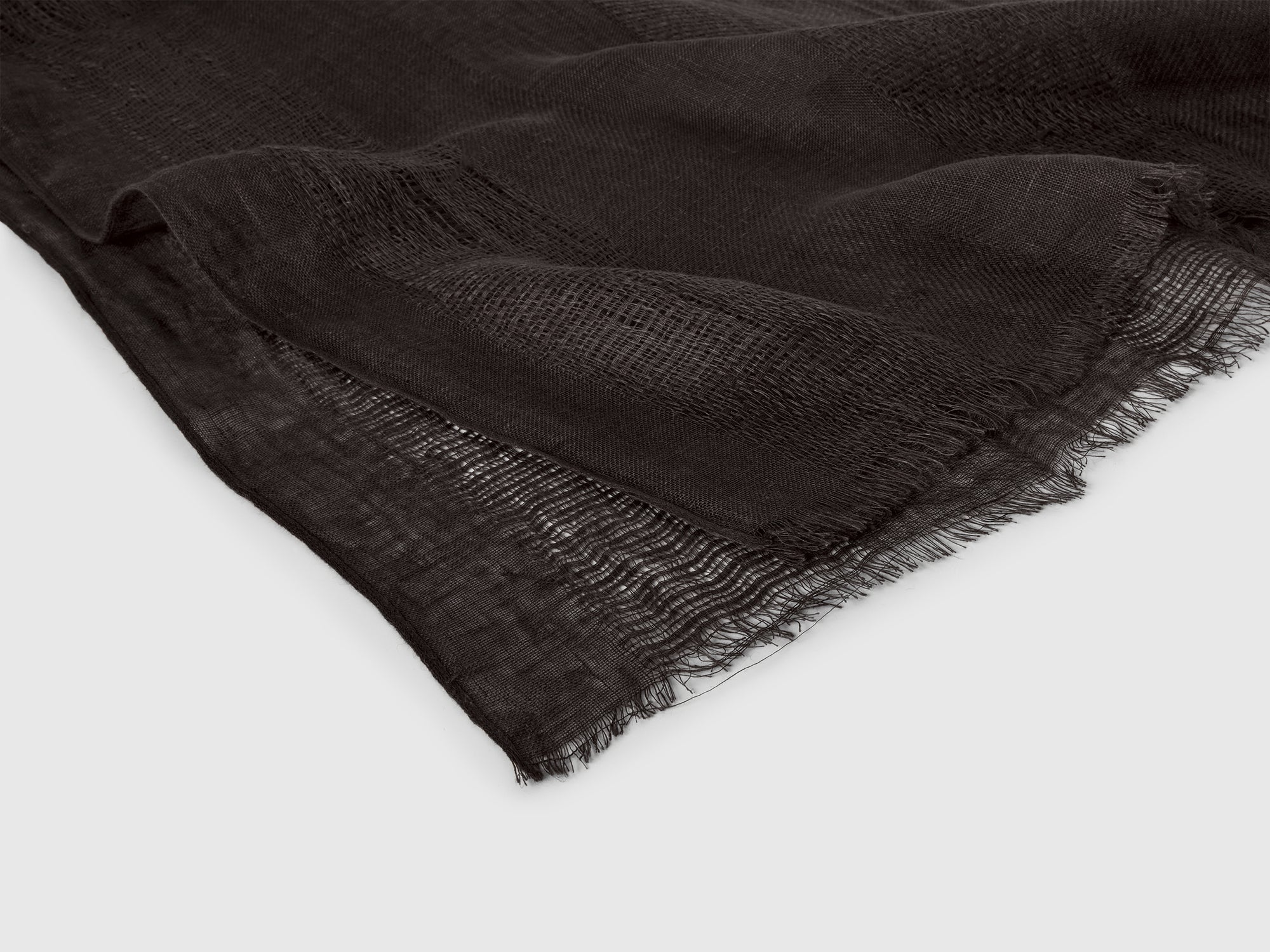 Pashmina in morbido tessuto di puro lino con frangette sulle estremità. Morbida e versatile, ideale per abbinamenti quotidiani.