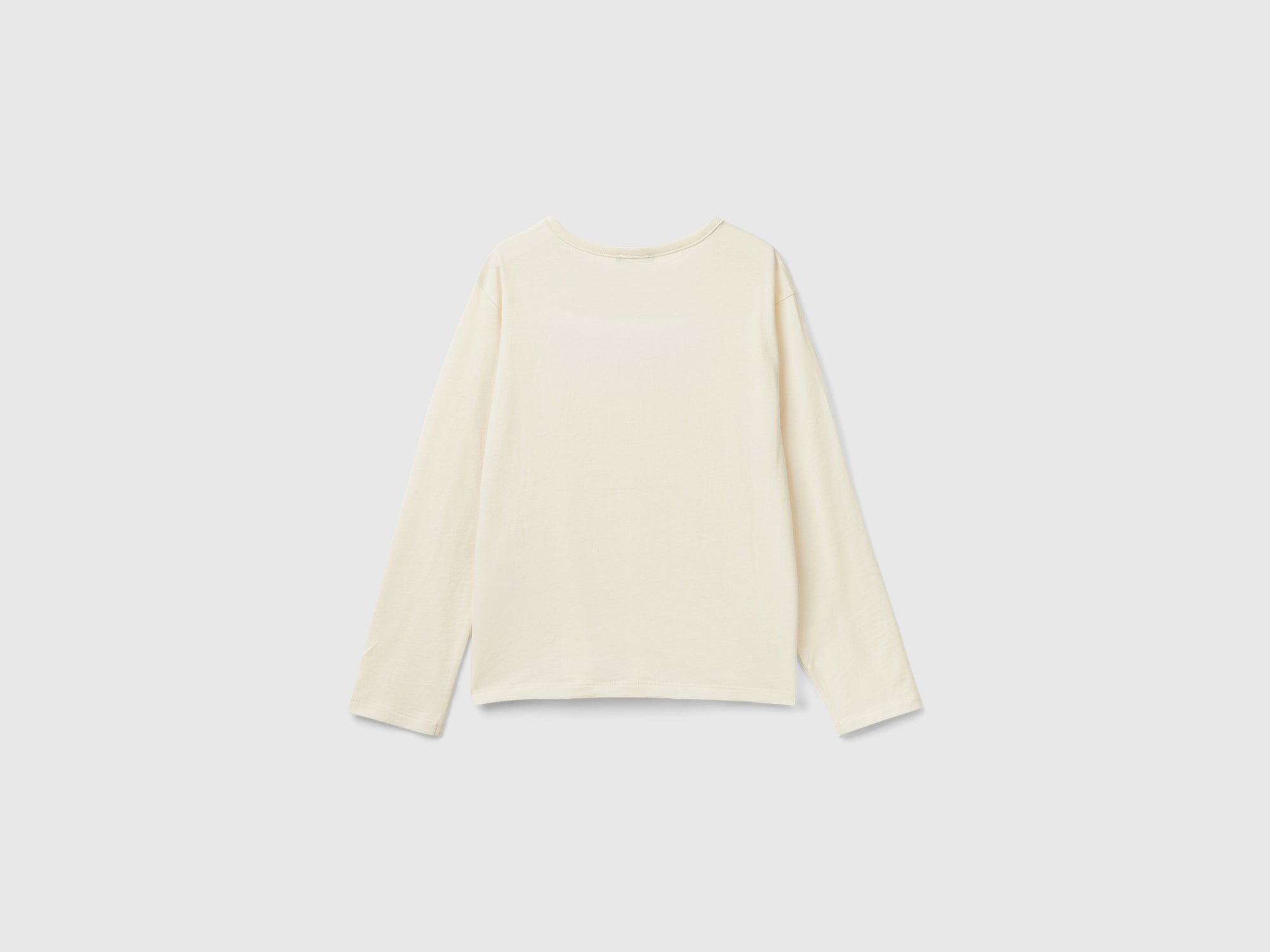Maglietta girocollo in morbido puro cotone biologico dalla mano calda. Vestibilità regolare, manica lunga e ricamo logo con paillettes sul davanti. Un tocco scintillante per completare gli outfit quotidiani. Articolo realizzato con materiale contenente almeno il 95% di cotone biologico.