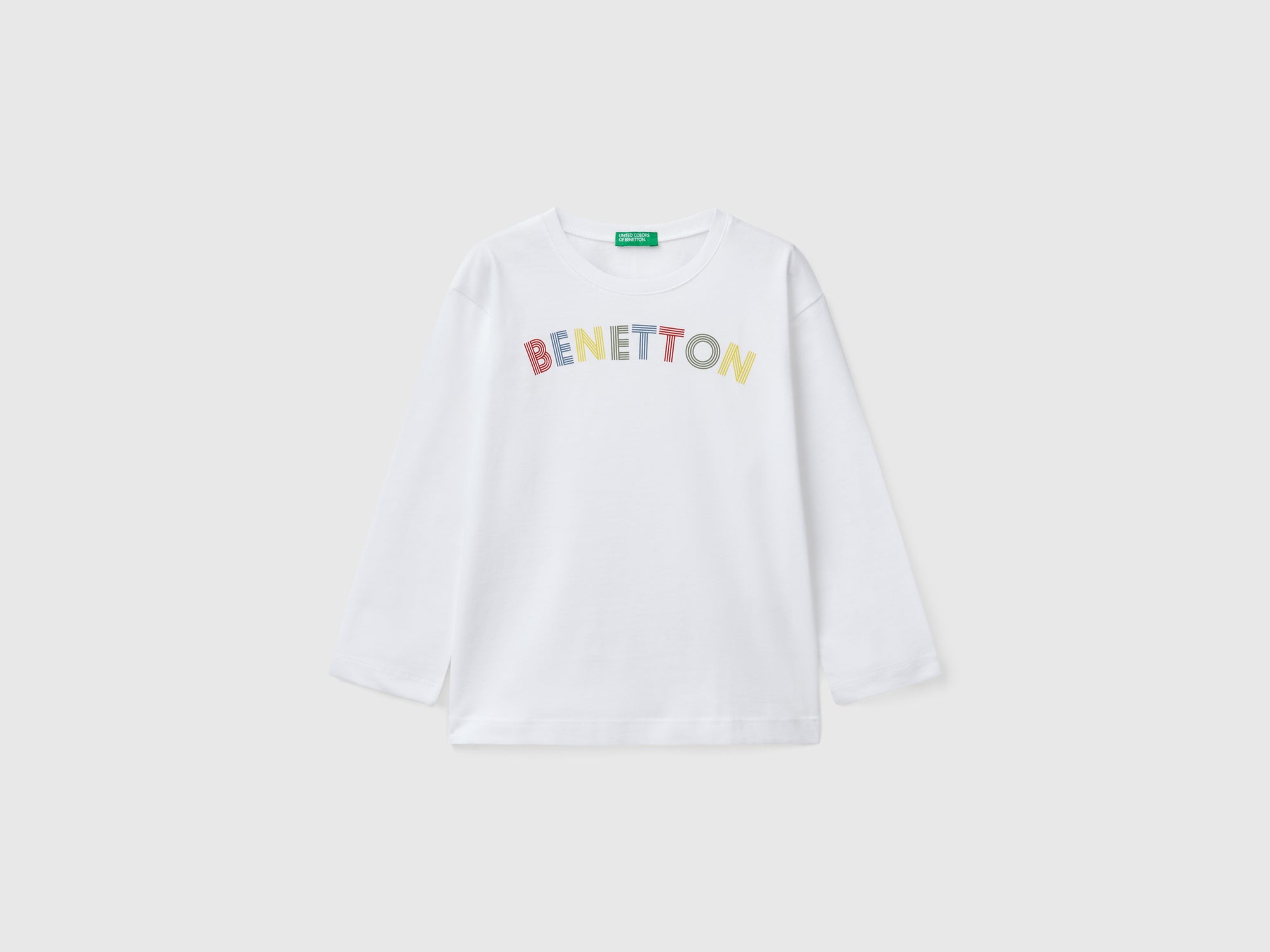 Long-sleeved T-shirt with logo da bambino blu scuro | Benetton Outlet