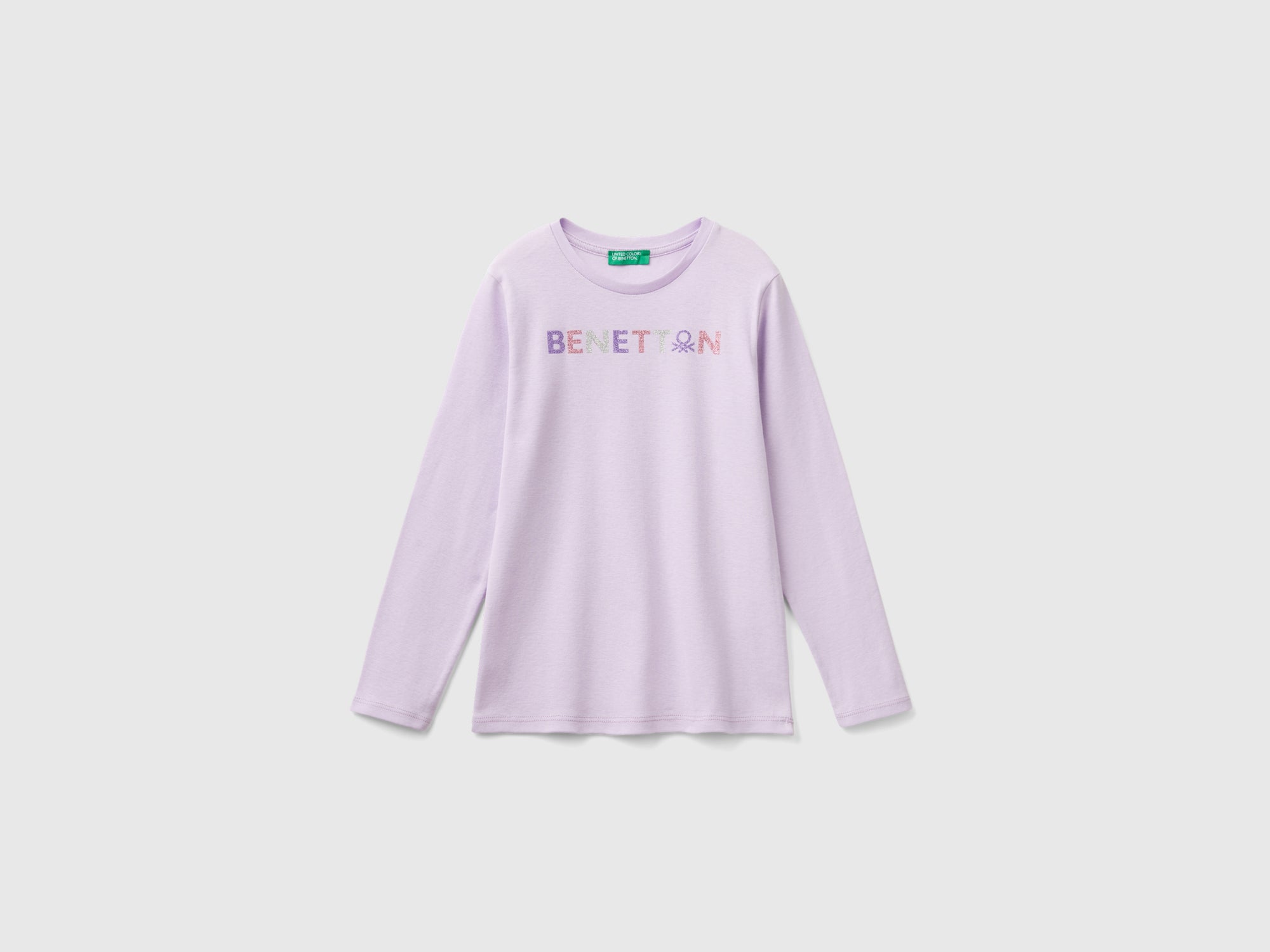 Maglietta girocollo a manica lunga in puro cotone biologico dalla vestibilità regolare. Un capo basico e confortevole sulla pelle, arricchito da una stampa logo multicolor glitterata. Articolo realizzato con materiale contenente almeno il 95% di cotone biologico.