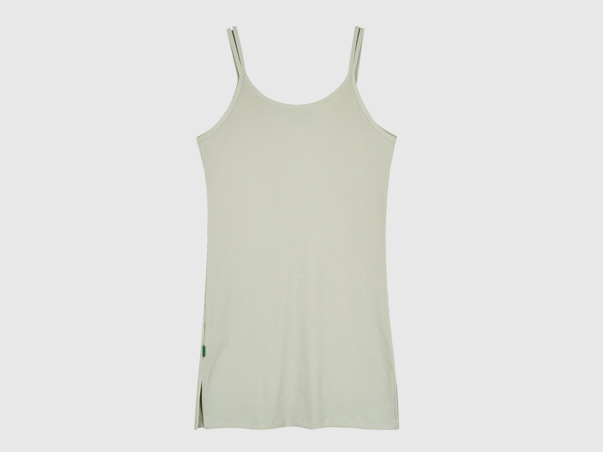 Vestito midi in morbido tessuto di misto cotone a costine. Doppia spallina, scollo rotondo e logo sul petto. Vestibilità dritta e morbida, per look comodi e quotidiani.