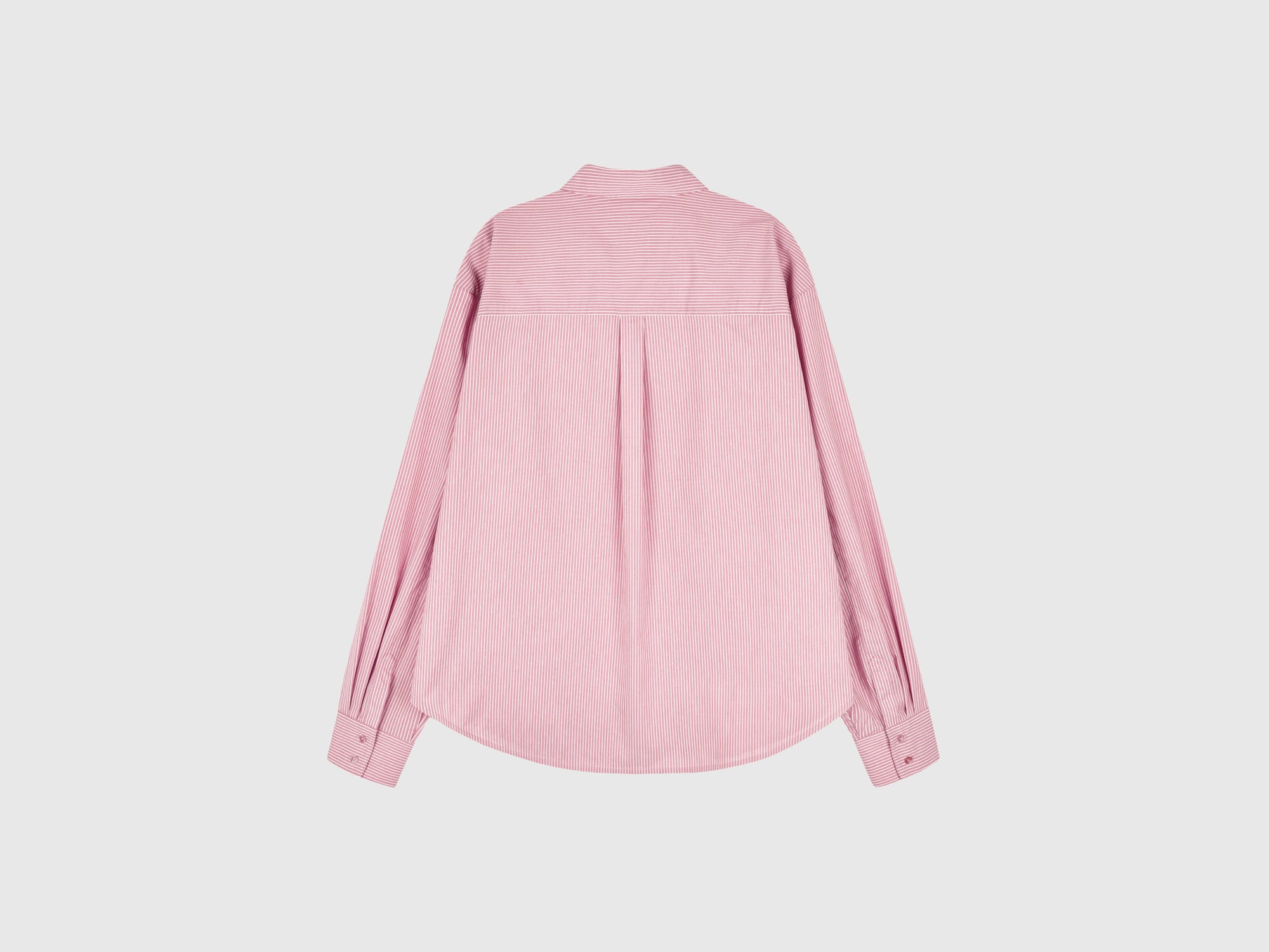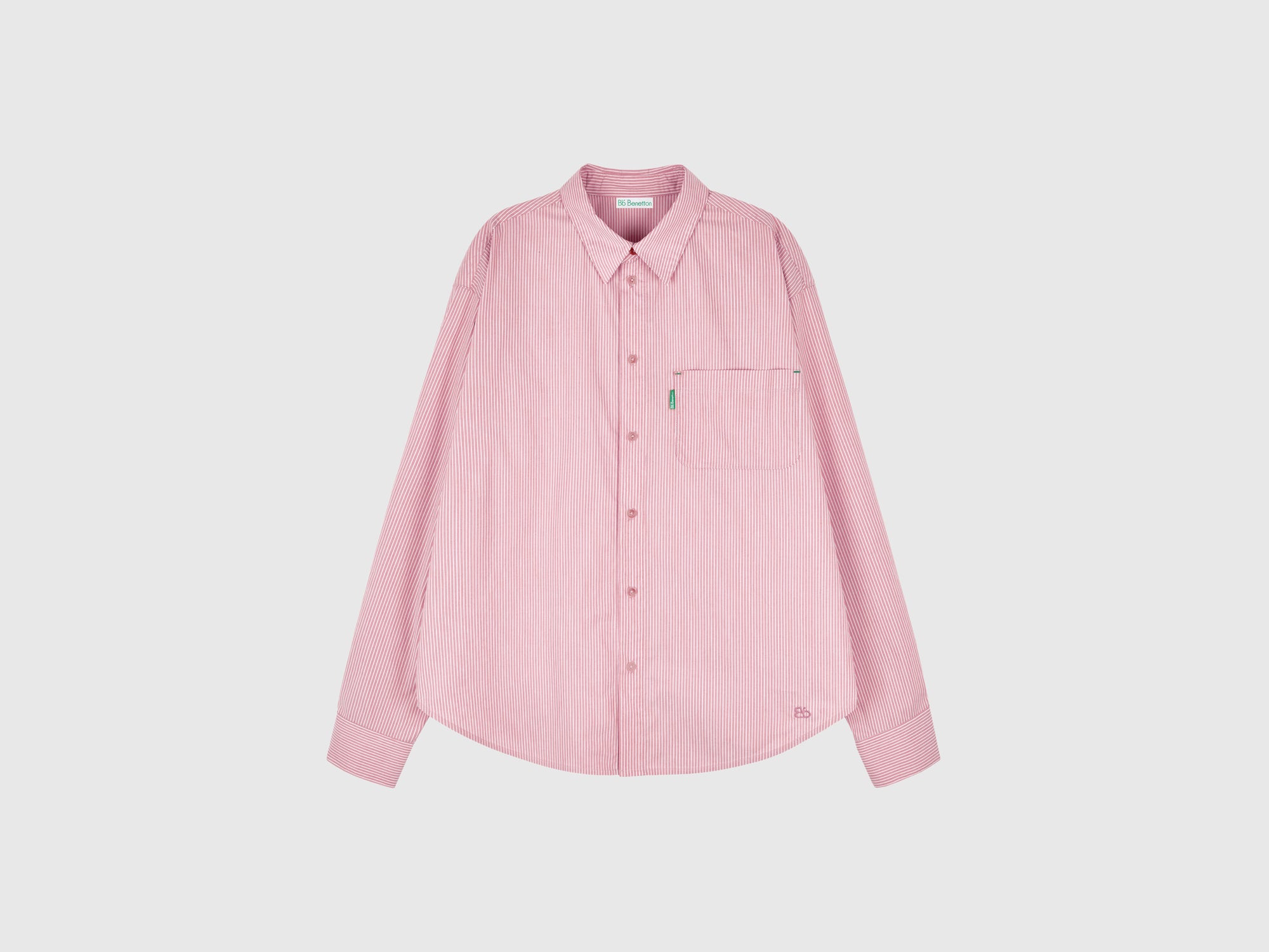 Long-sleeved shirt in soft, stretch cotton blend fabric. Classic collar, front button placket, and breast pocket. Two-tone vertical stripe pattern throughout. Chic and comfortable, for looks bursting with personality.