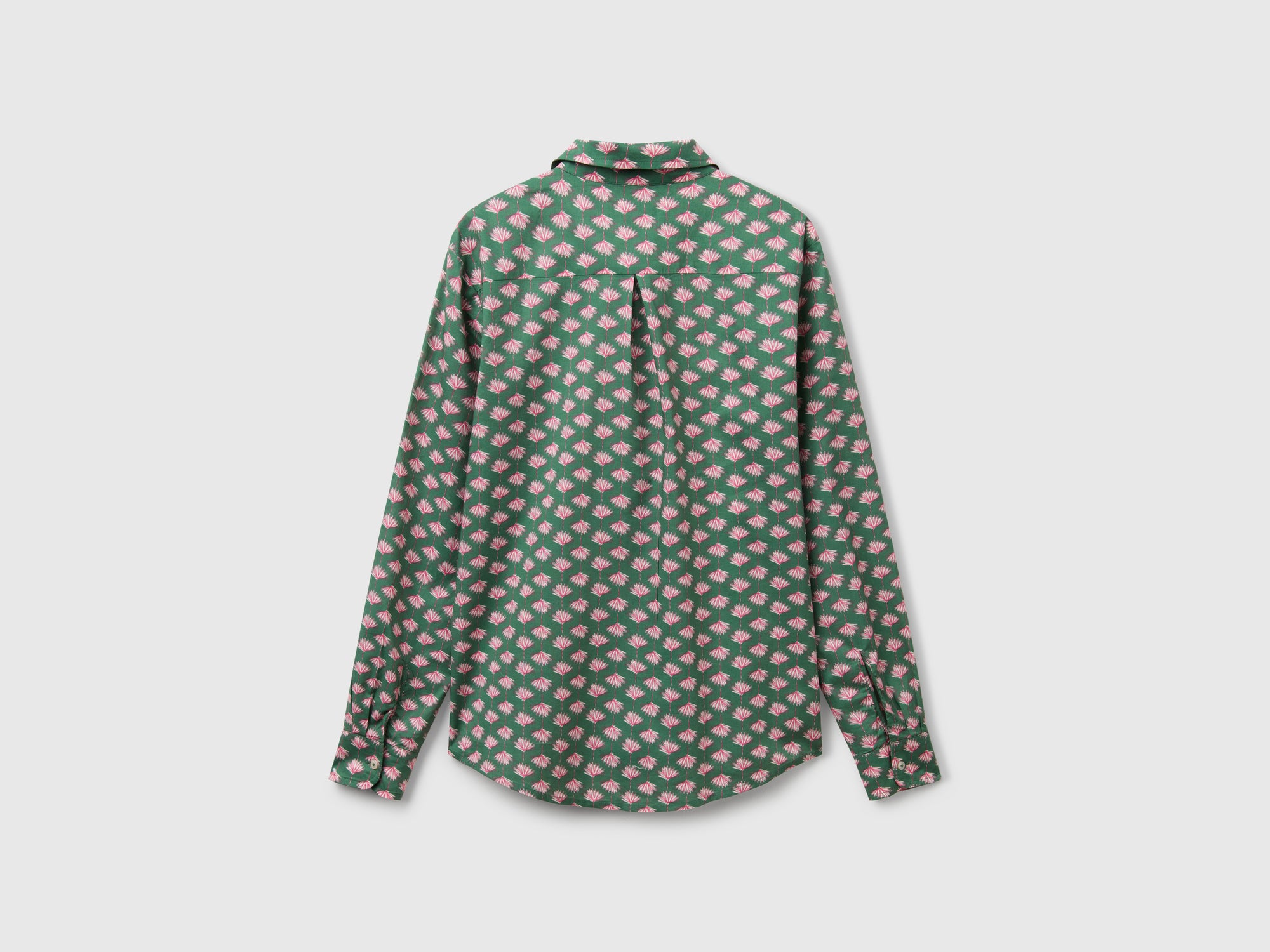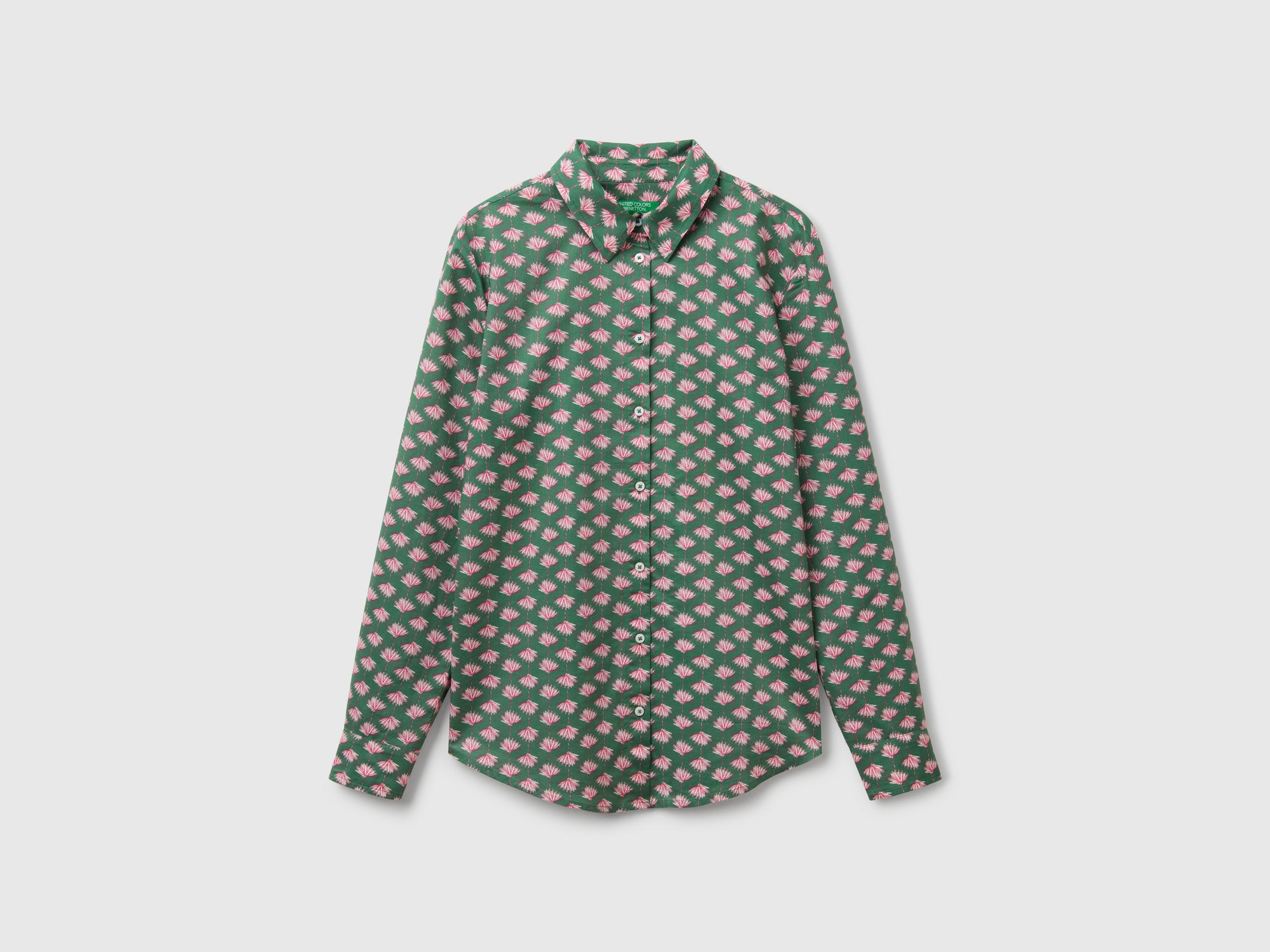 Camicia a manica lunga in tessuto leggero di puro cotone. Colletto classico, abbottonatura frontale, stampa fantasia su tutto il capo. Confortevole e quotidiana, si presta a molteplici occasioni d'uso.