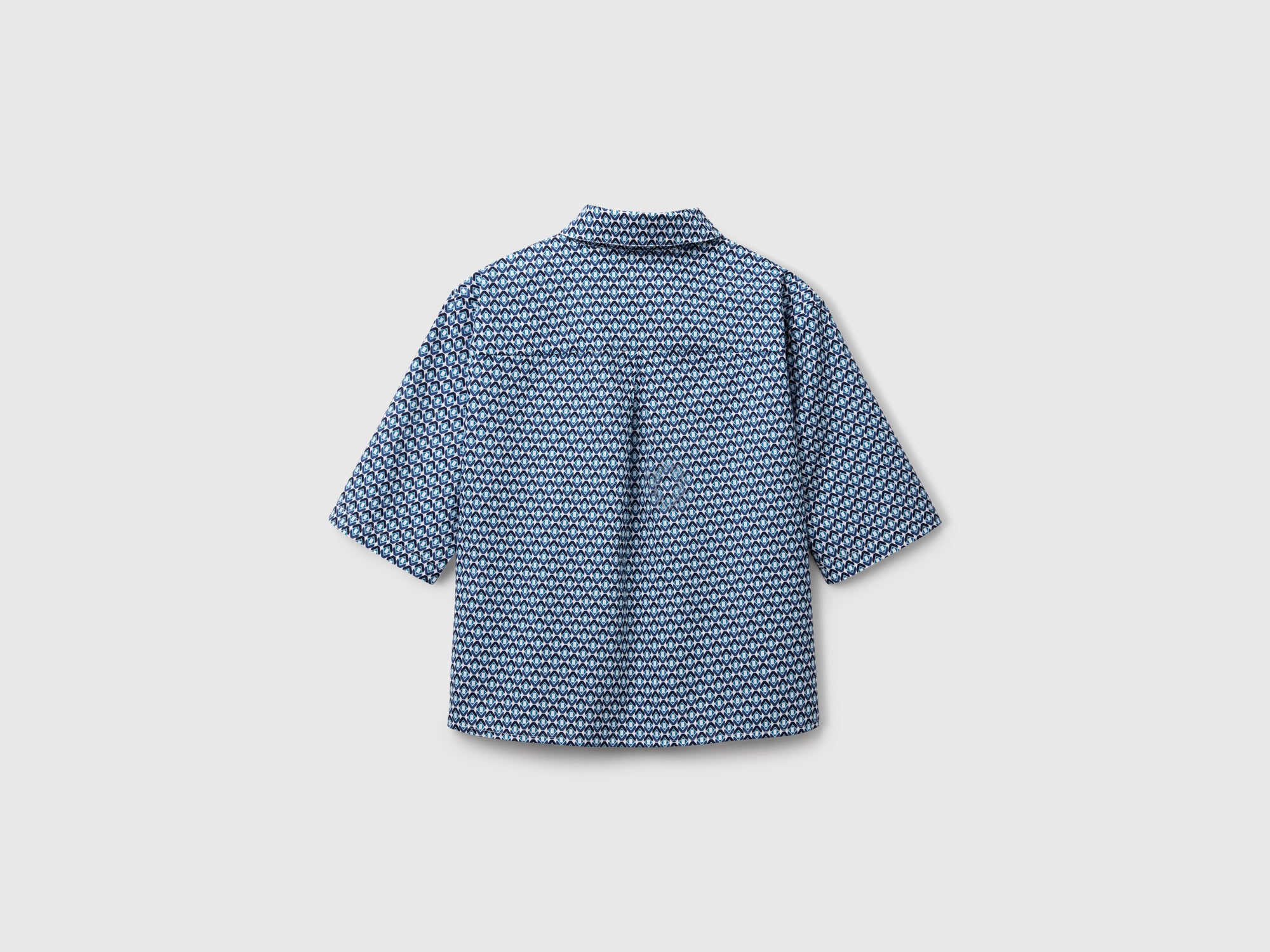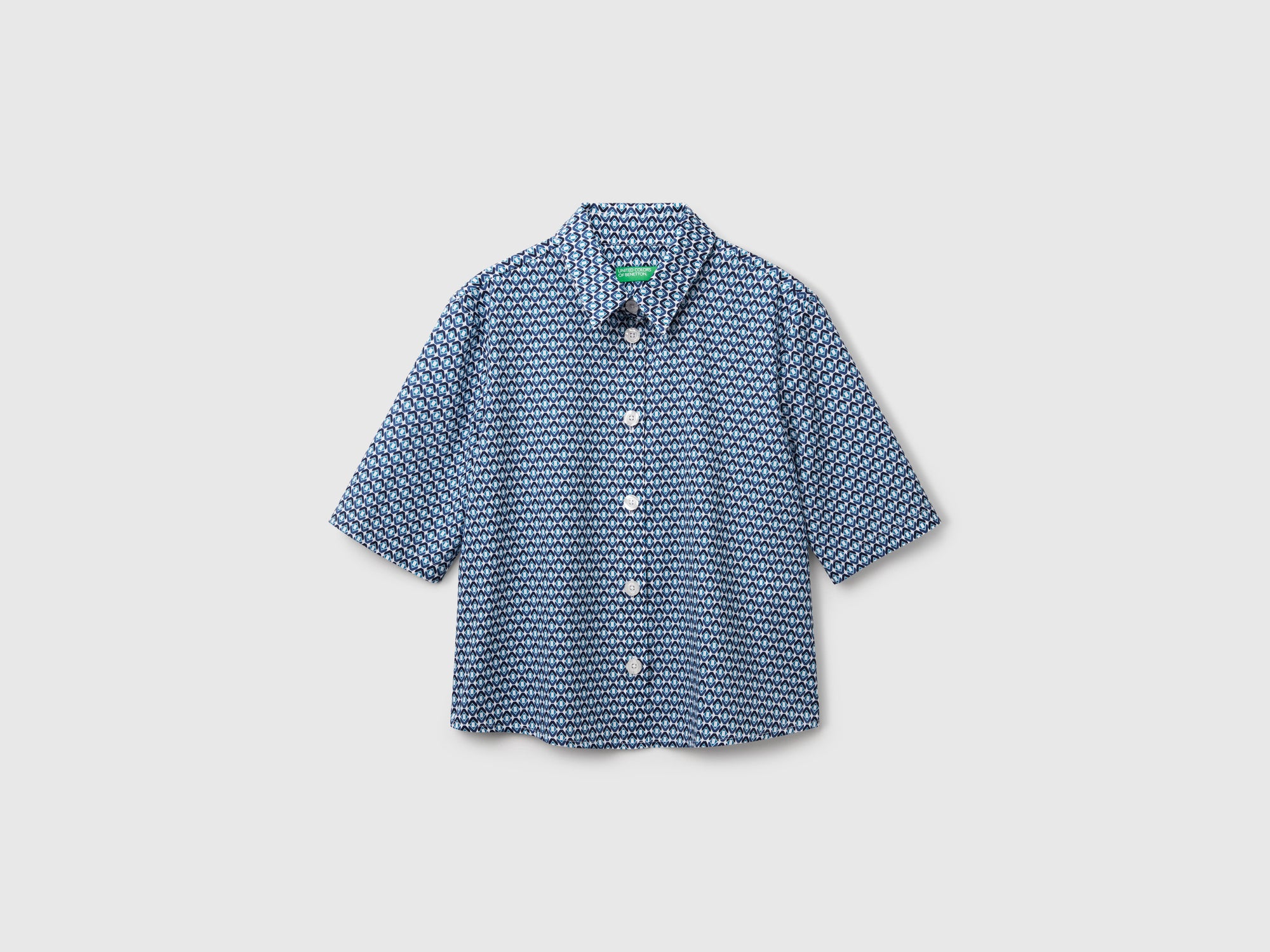 Lightweight, regular-fit pure cotton shirt. Pointed collar, 3/4 sleeves, and front button closure. Colorful all-over print. 100% cotton muslin; All-over print; Back yoke with flap