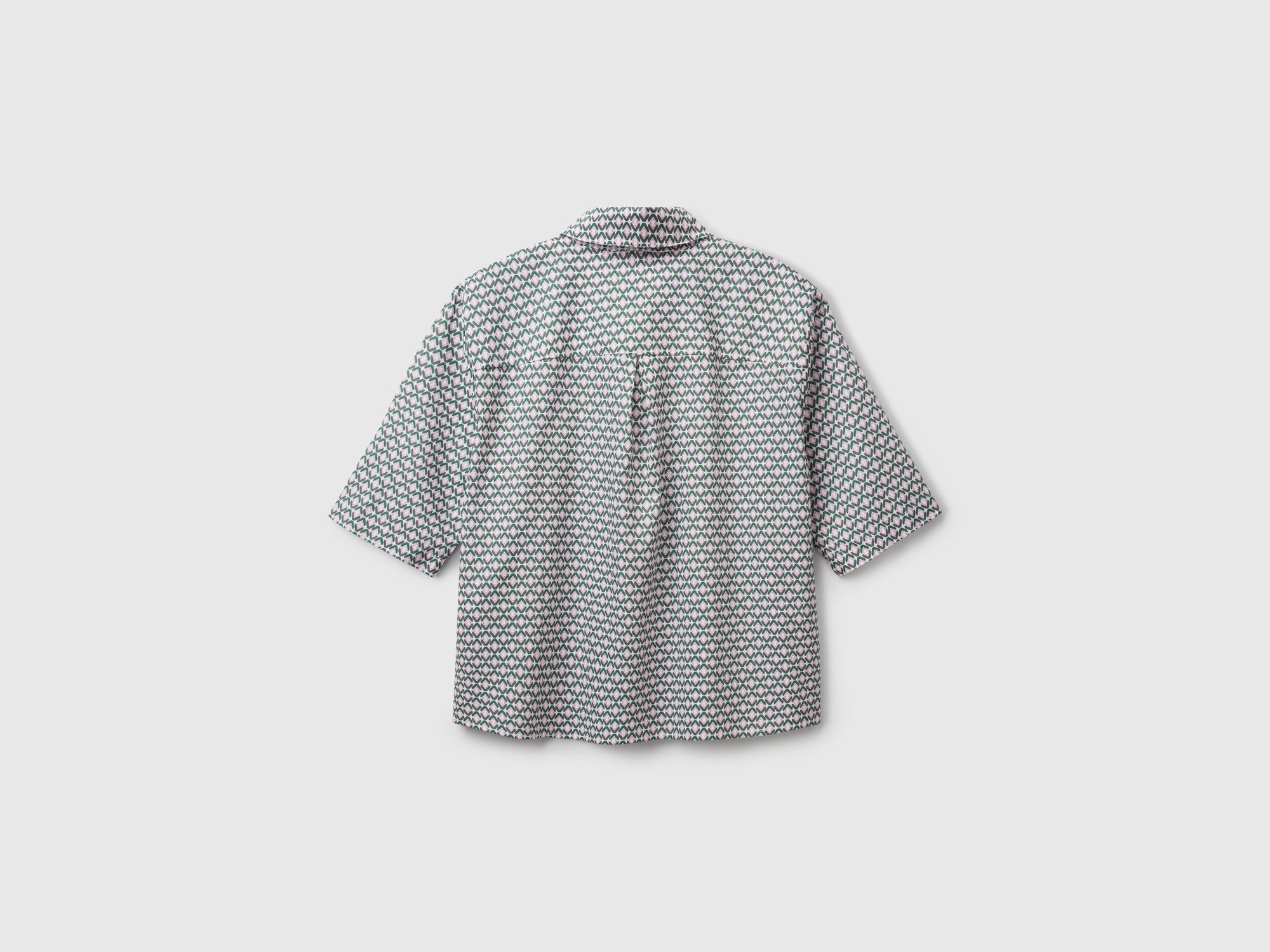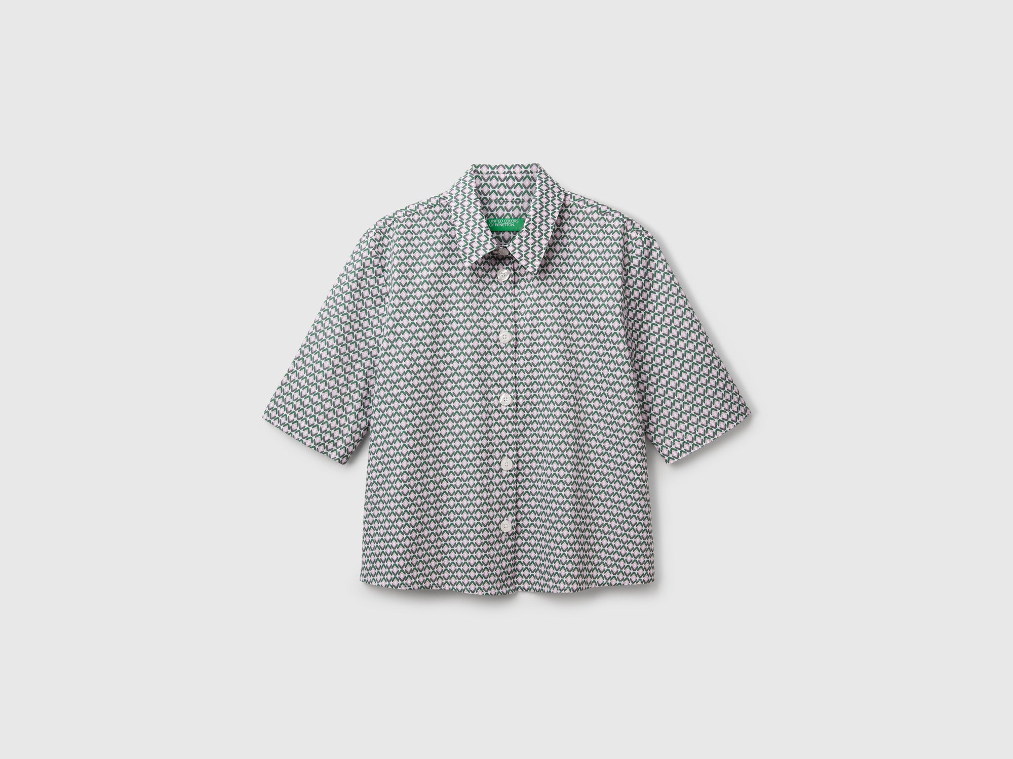 Camicia in puro cotone leggero dalla vestibilità regolare. Colletto a punta, manica a 3/4 e abbottonatura frontale. Colorata stampa fantasia su tutto il capo.