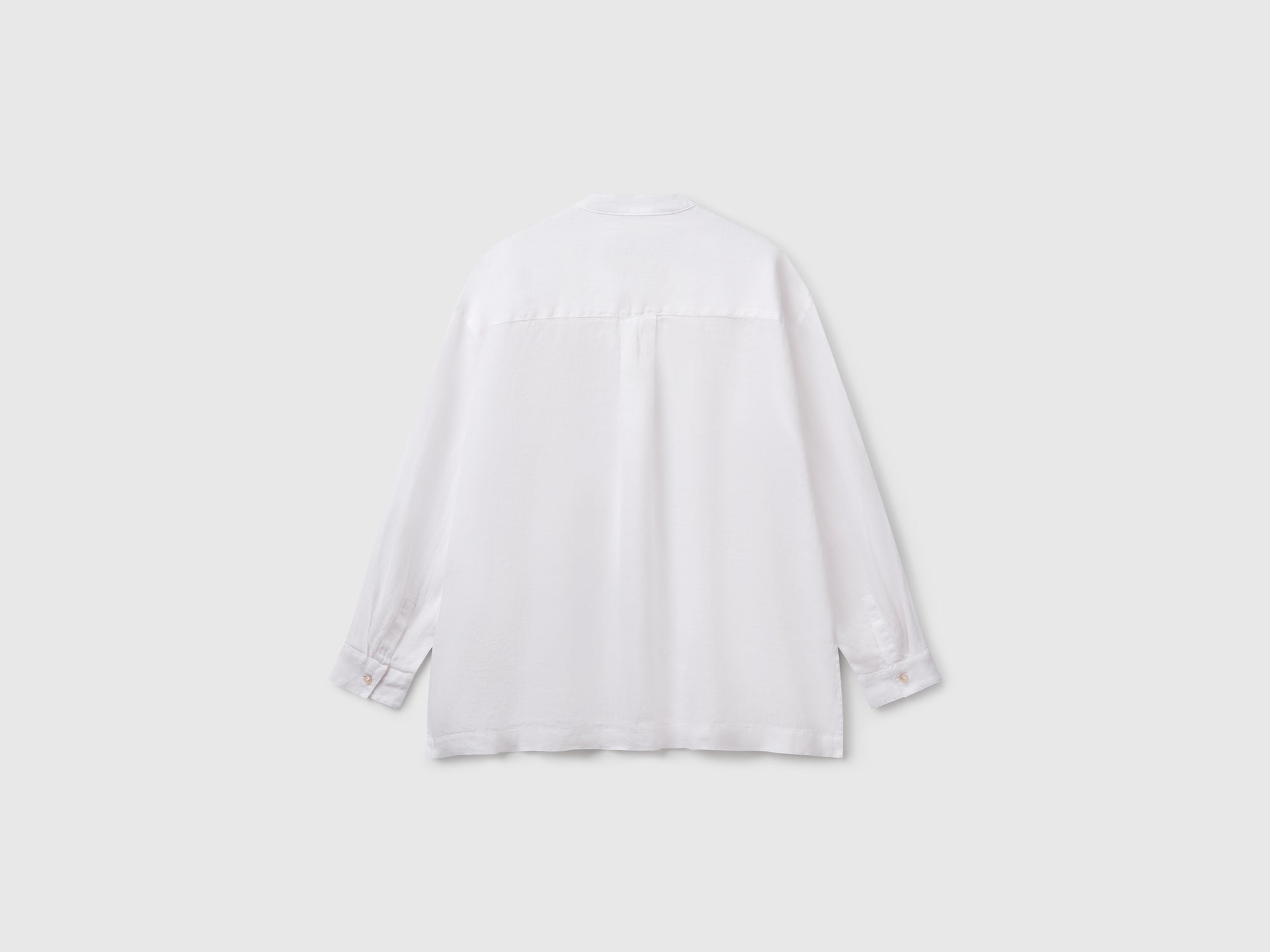 - Main features: 100% lino; Manica lunga; Polsini con bottone; Carré con faldone sul retro