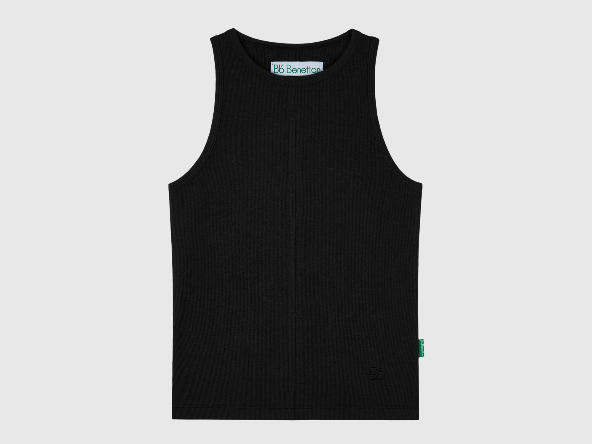 Canotta in morbido tessuto di misto cotone e Modal elasticizzato. Scollo all'americana e logo sul davanti. Ideale da indossare nella bella stagione.