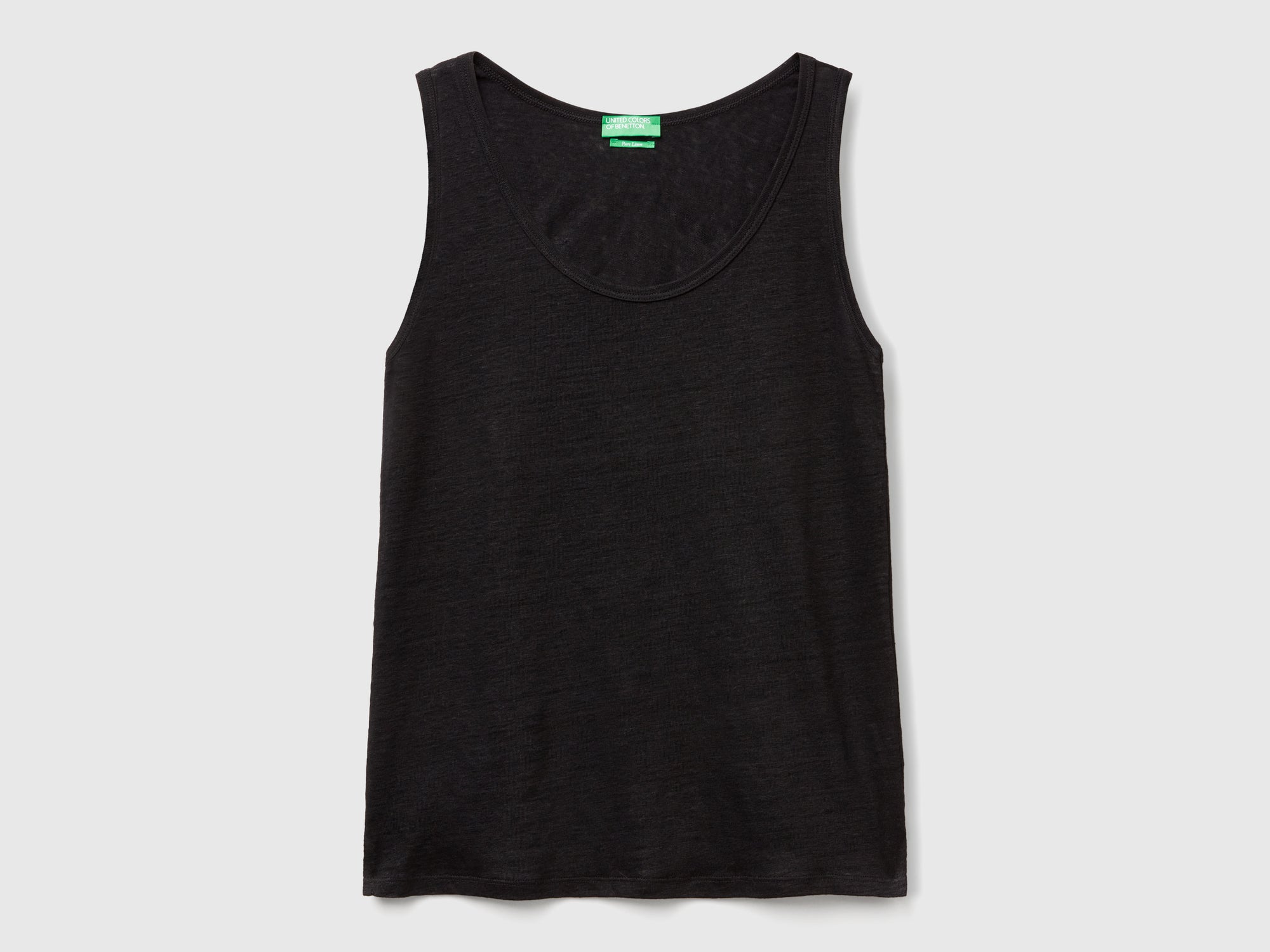 Canotta in tessuto morbido e leggero di puro lino. Vestibilità regolare con scollo rotondo e spacchetti laterali. Un capo basico ma versatile, per abbinamenti quotidiani.