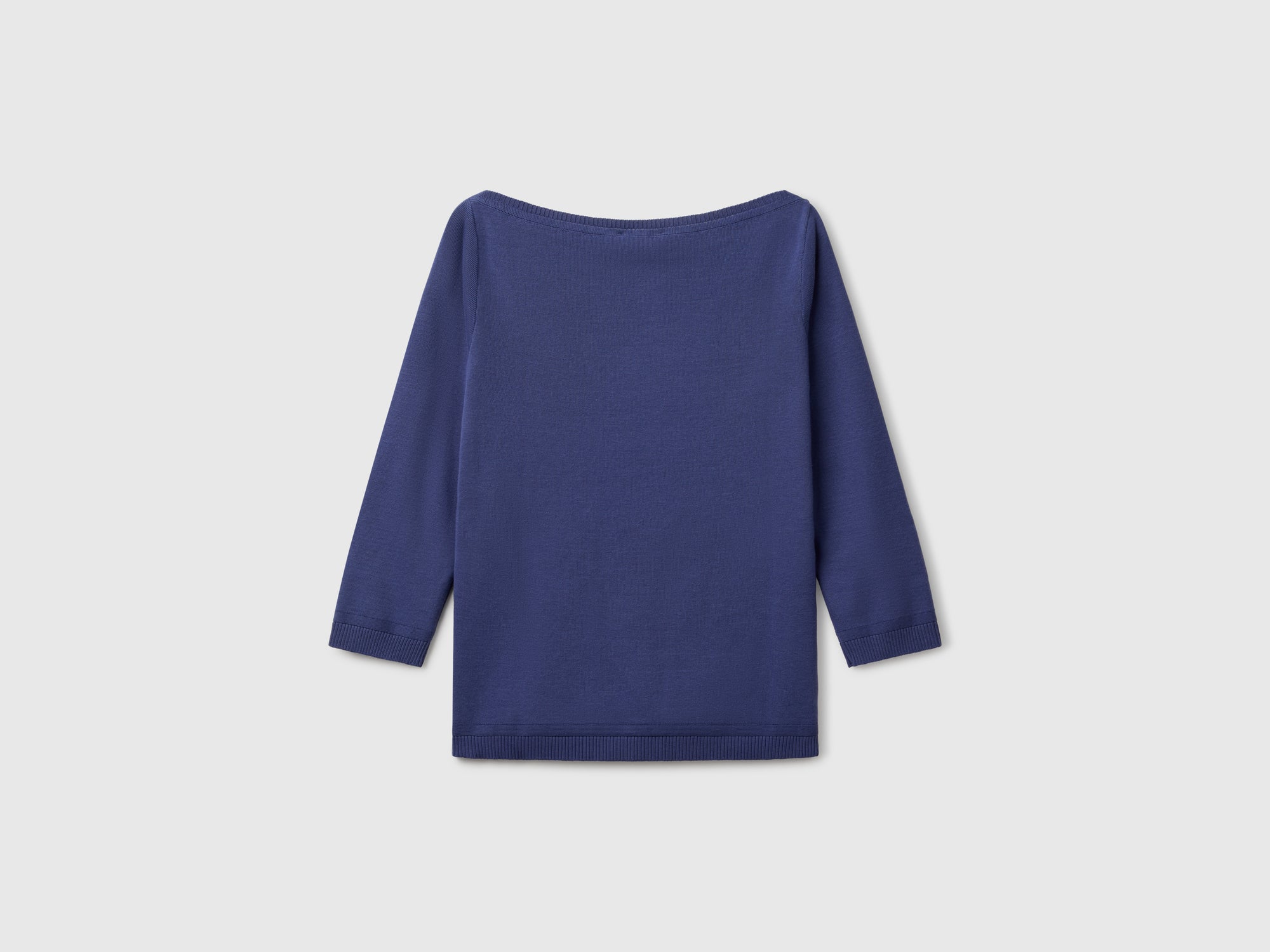 - Main features: Pure cotton ribbed spring sweater with a boat neck and 3/4 sleeves. Simple, feminine, and versatile. 100% cotton; Plain knit; Ribbed edges