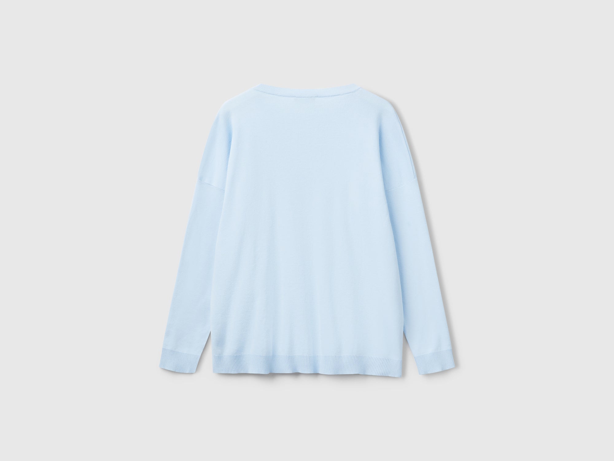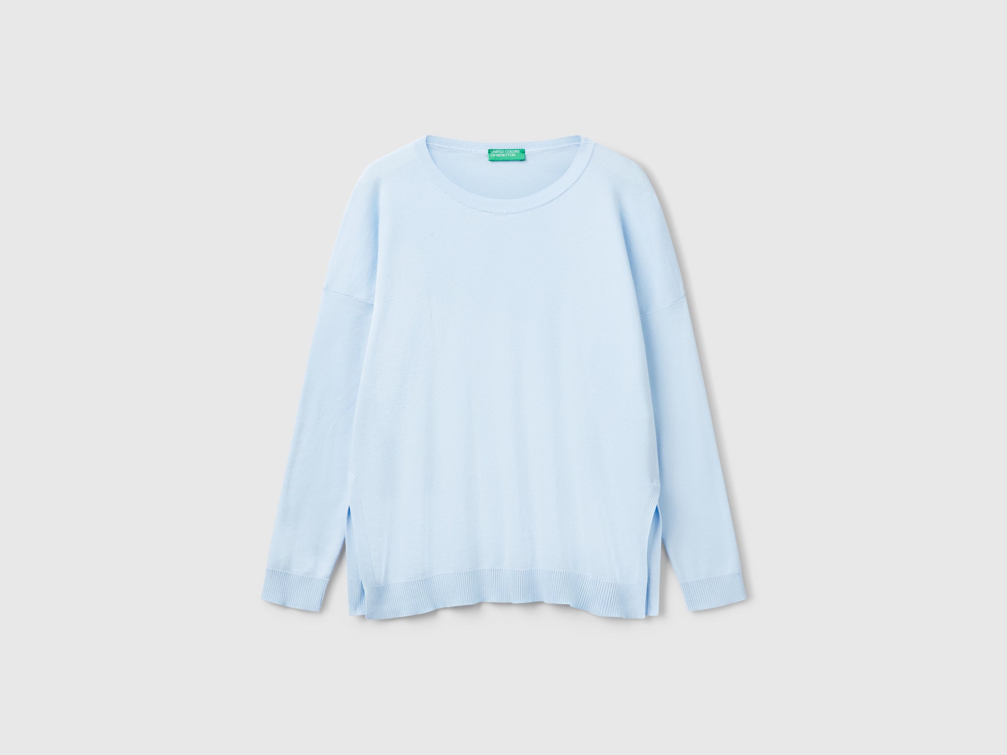 - Main features: Long-sleeved, loose-fitting sweater in pure cotton. Round neck, dropped shoulders, and side slits. Slightly longer at the back. Casual and comfortable. 100% cotton; Plain knit; Ribbed edges