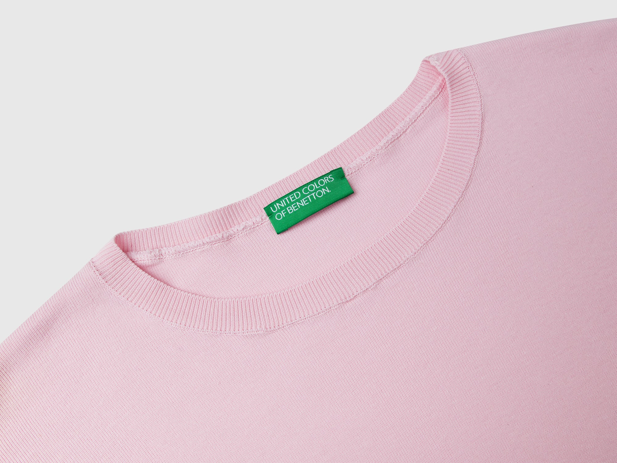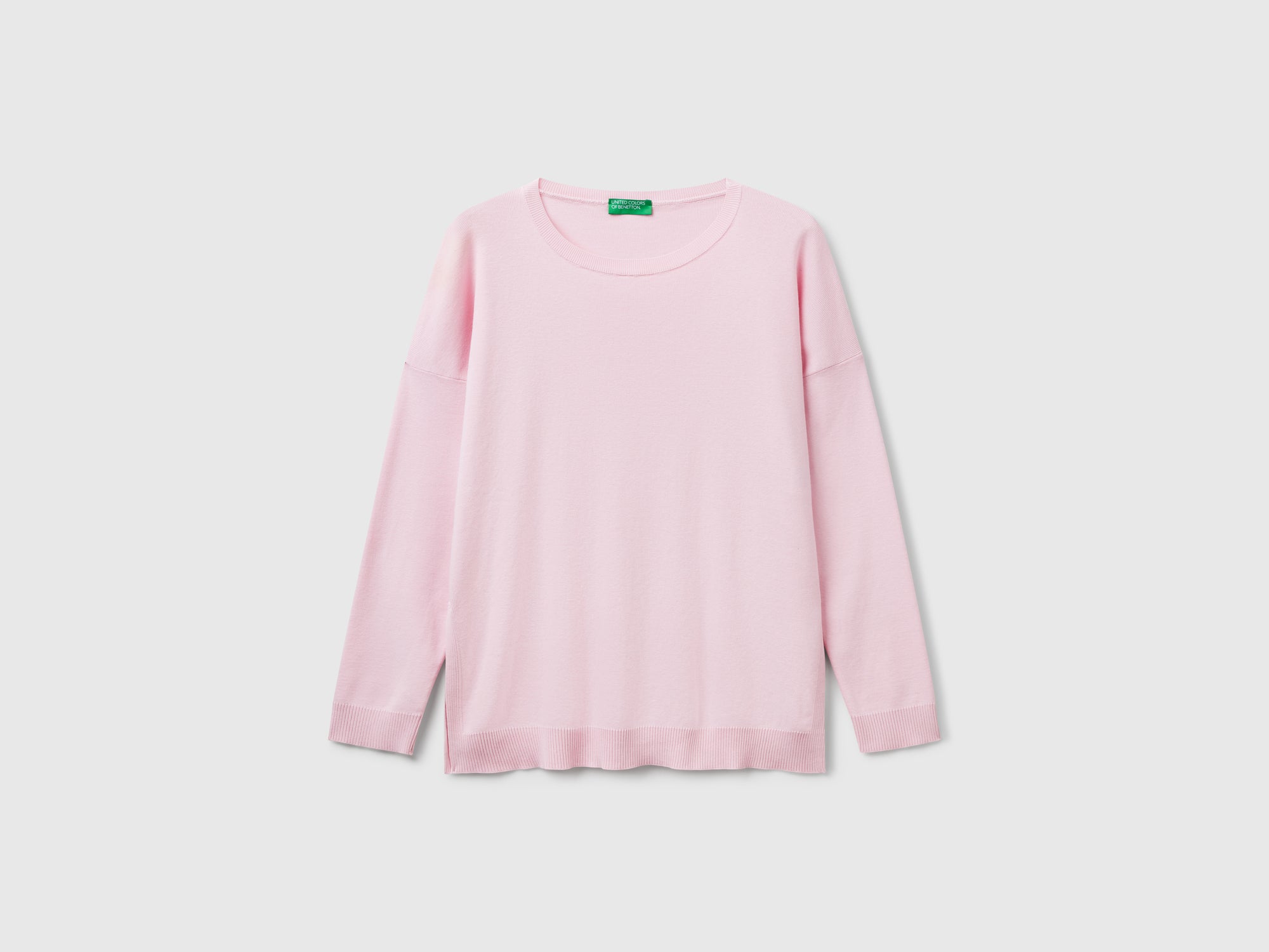 - Main features: Long-sleeved, loose-fitting sweater in pure cotton. Round neck, dropped shoulders, and side slits. Slightly longer at the back. Casual and comfortable. 100% cotton; Plain knit; Ribbed edges