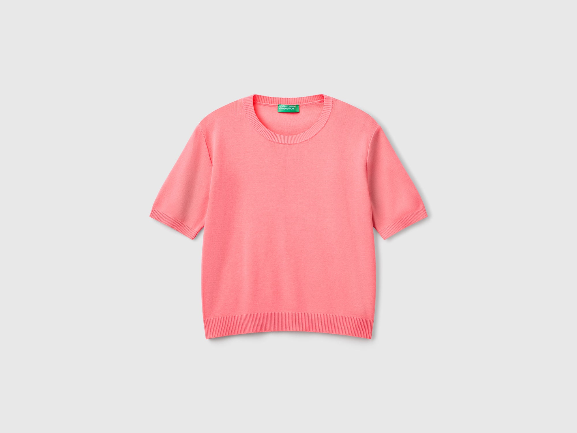Pure cotton V-neck sweater da donna fragola | Benetton Outlet
