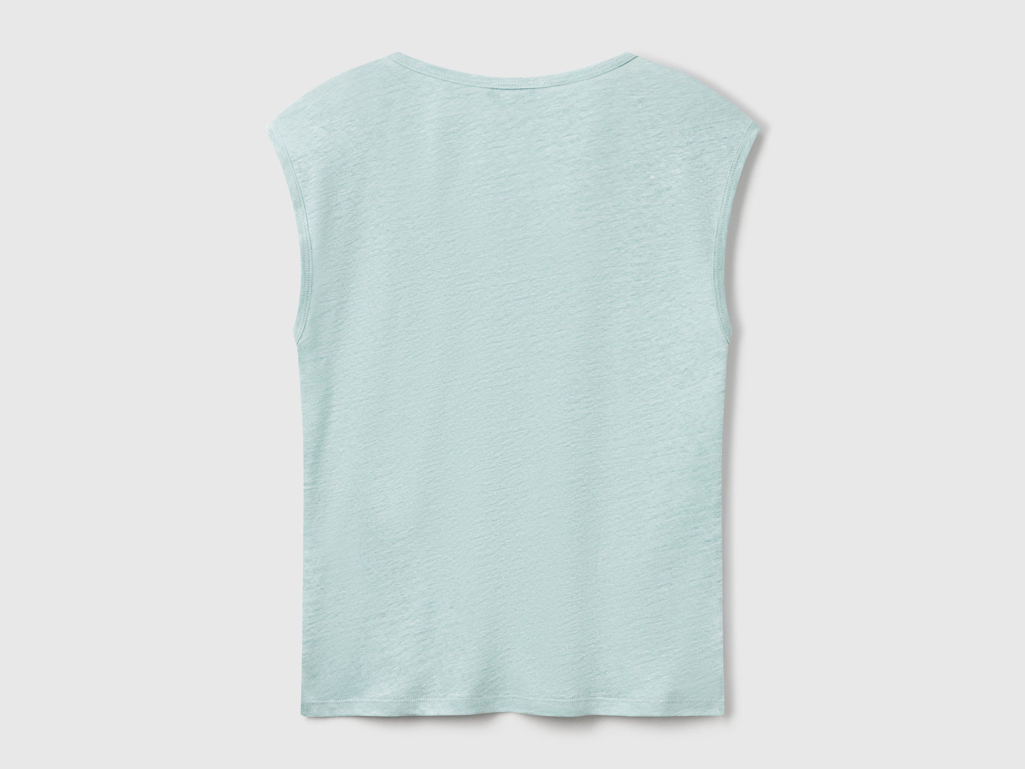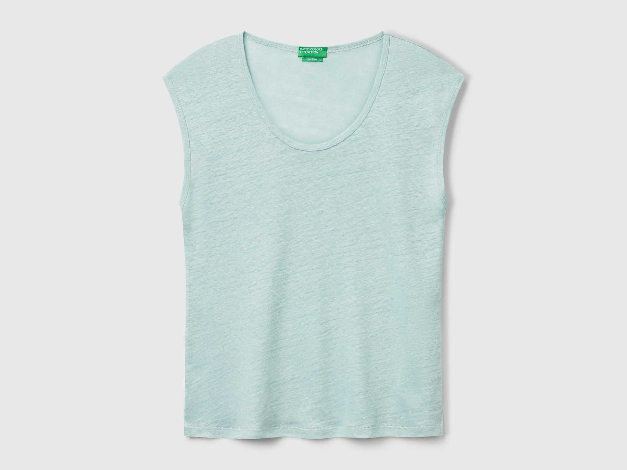 Maglietta scollo ampio in puro lino da donna verde acqua | Benetton Outlet Maglietta scollo ampio in puro lino da donna verde acqua 2 | Benetton Outlet
