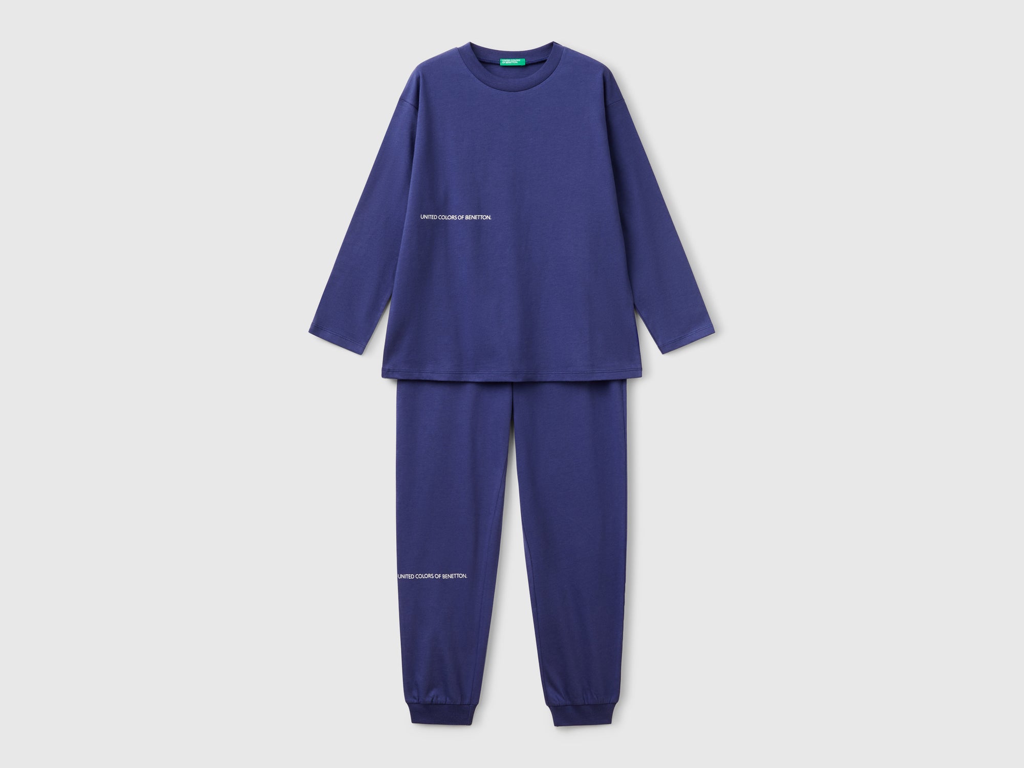 Pigiama con logo 100% cotone da bambino blu | Benetton Outlet
