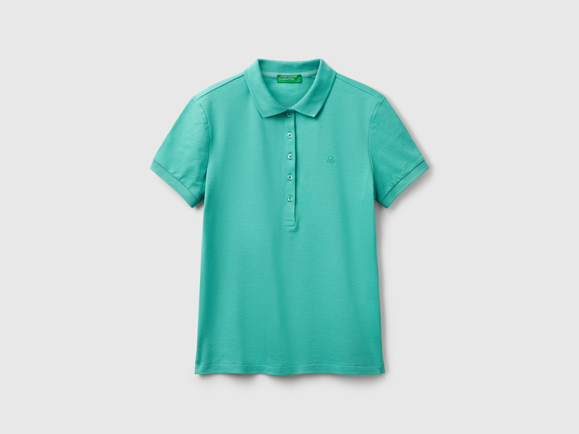 Polo slim fit in cotone stretch da donna verde acqua | Benetton Outlet Polo slim fit in cotone stretch da donna verde acqua 2 | Benetton Outlet