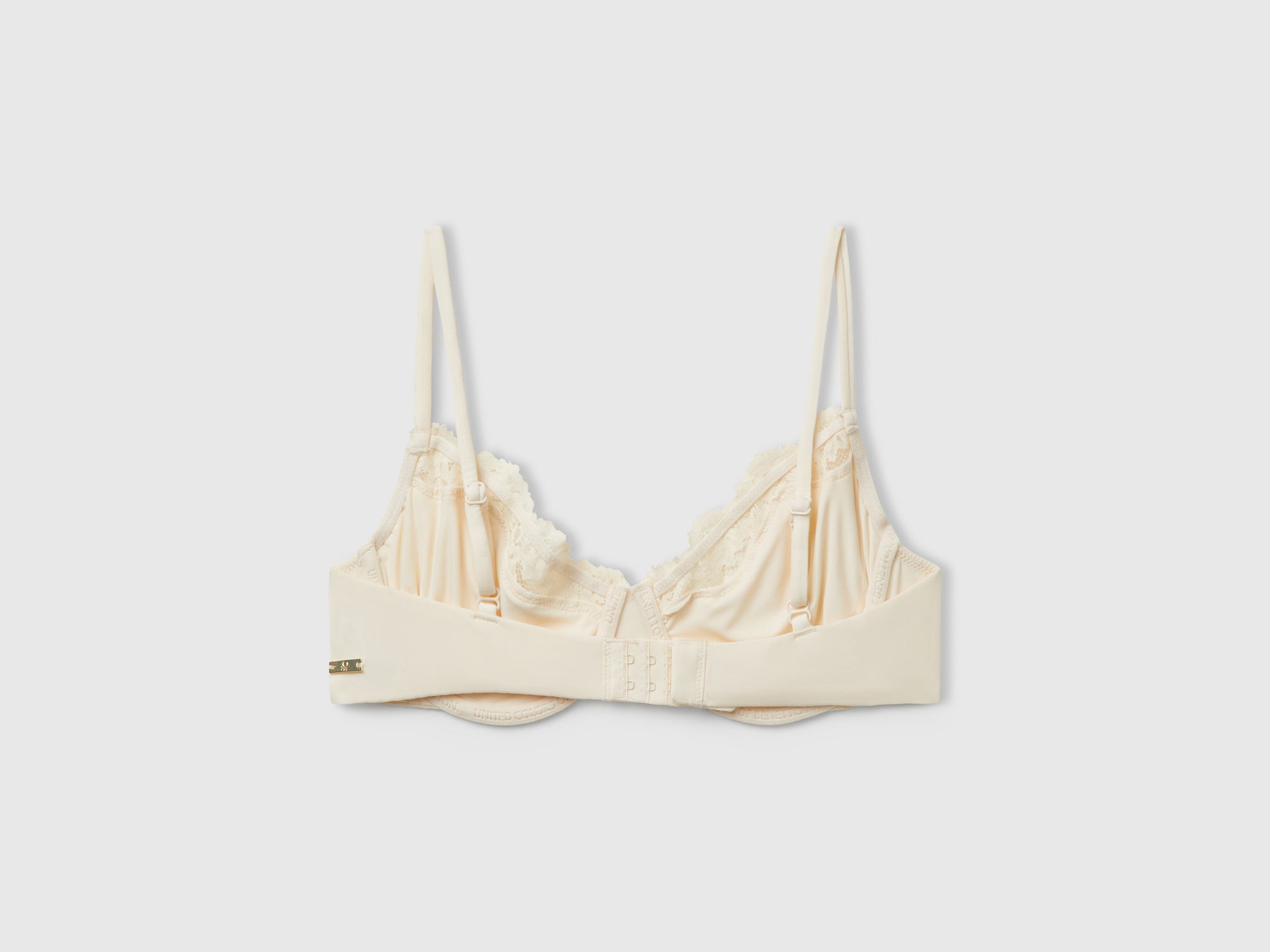 Reggiseno con ferretto in morbido tessuto super elasticizzato. Inseto in pizzo sulla coppa, spalline sottili regolabili e apertura sulla schiena con gancetti.
