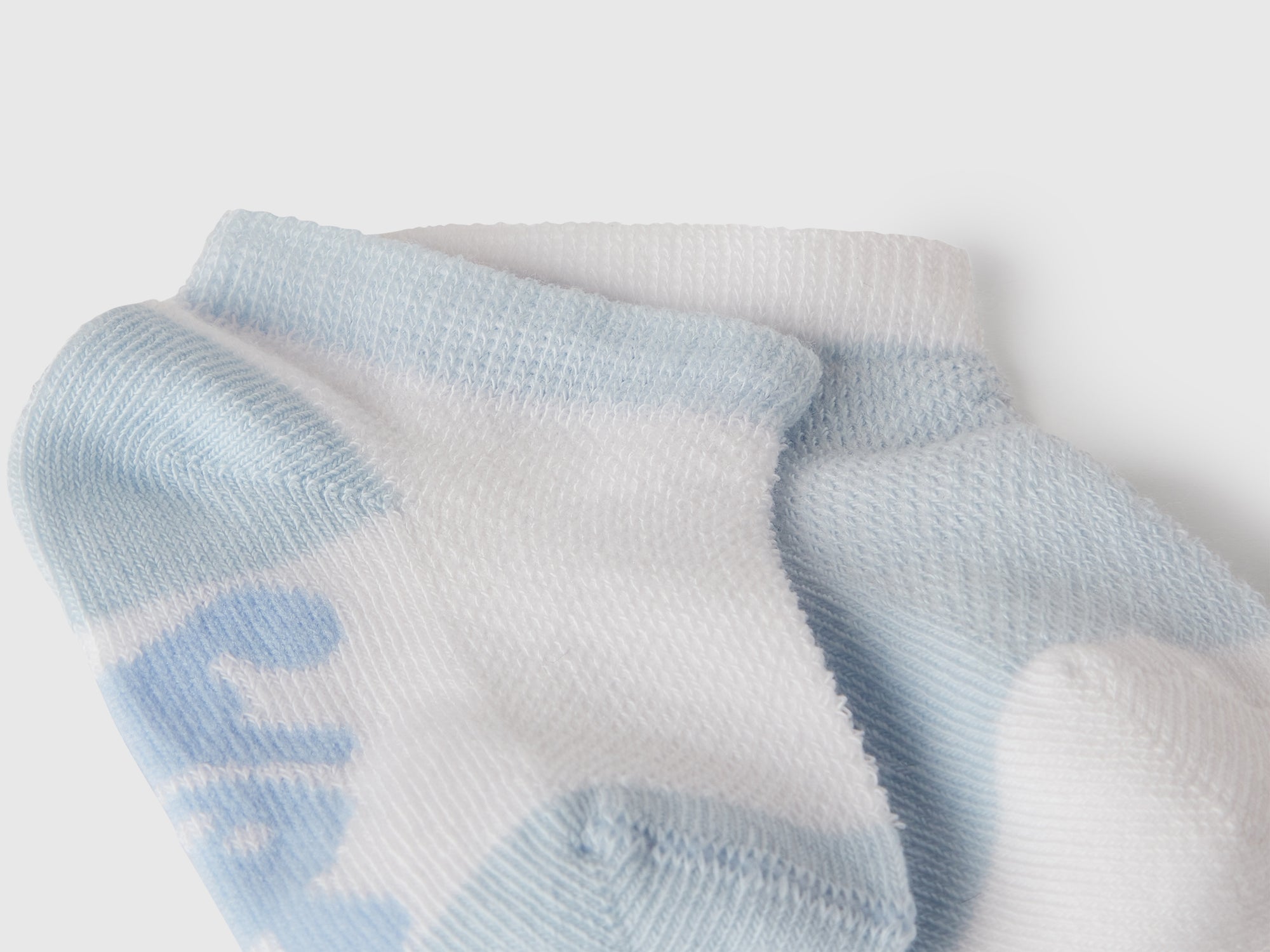 Set composto da due paia di calzini corti in misto cotone elasticizzato. Design bicolor con intarsio sul sottopiede, uno con coniglietto, l'altro con slogan.