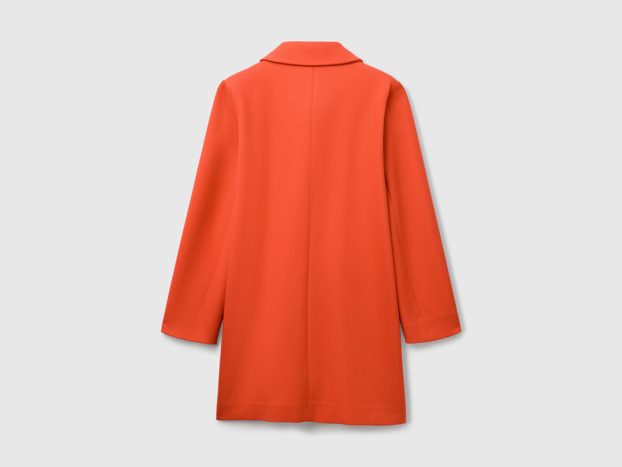 Cappotto realizzato in misto viscosa elasticizzata, foderato in misto viscosa. Taglio svasato, collo a camicia e abbottonatura frontale. Lunghezza a metà coscia, taschini a filetto sul davanti. Semplice ma elegante, adatto anche per le occasioni formali.
