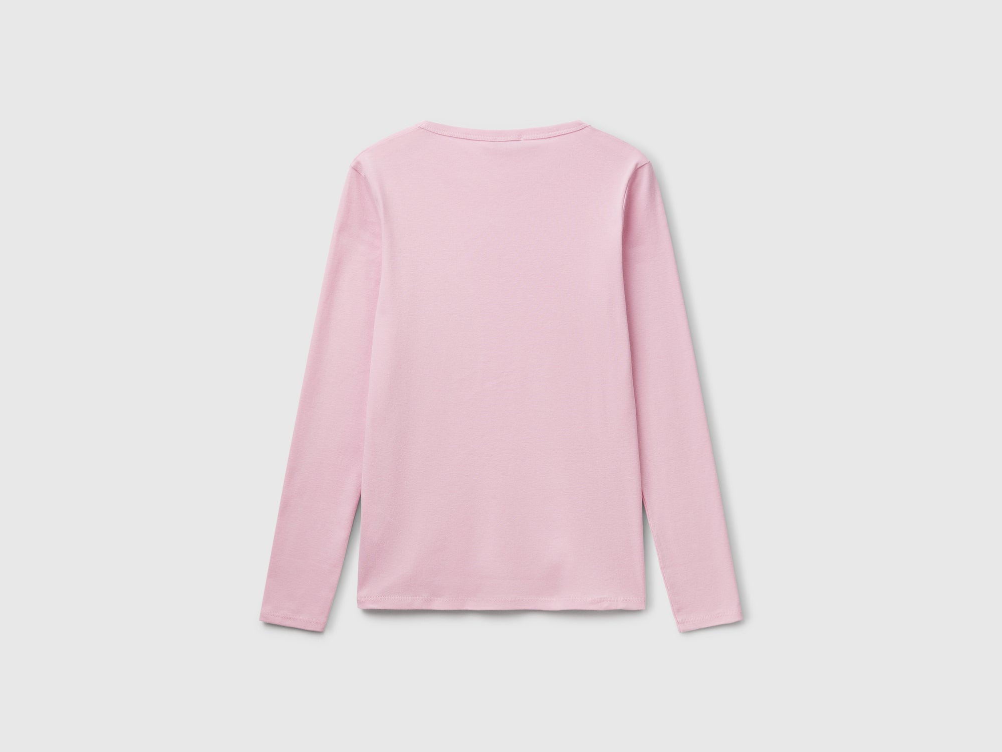 T-shirt a manica lunga 100% cotone da donna rosa | Benetton Outlet T-shirt a manica lunga 100% cotone da donna rosa 2 | Benetton Outlet