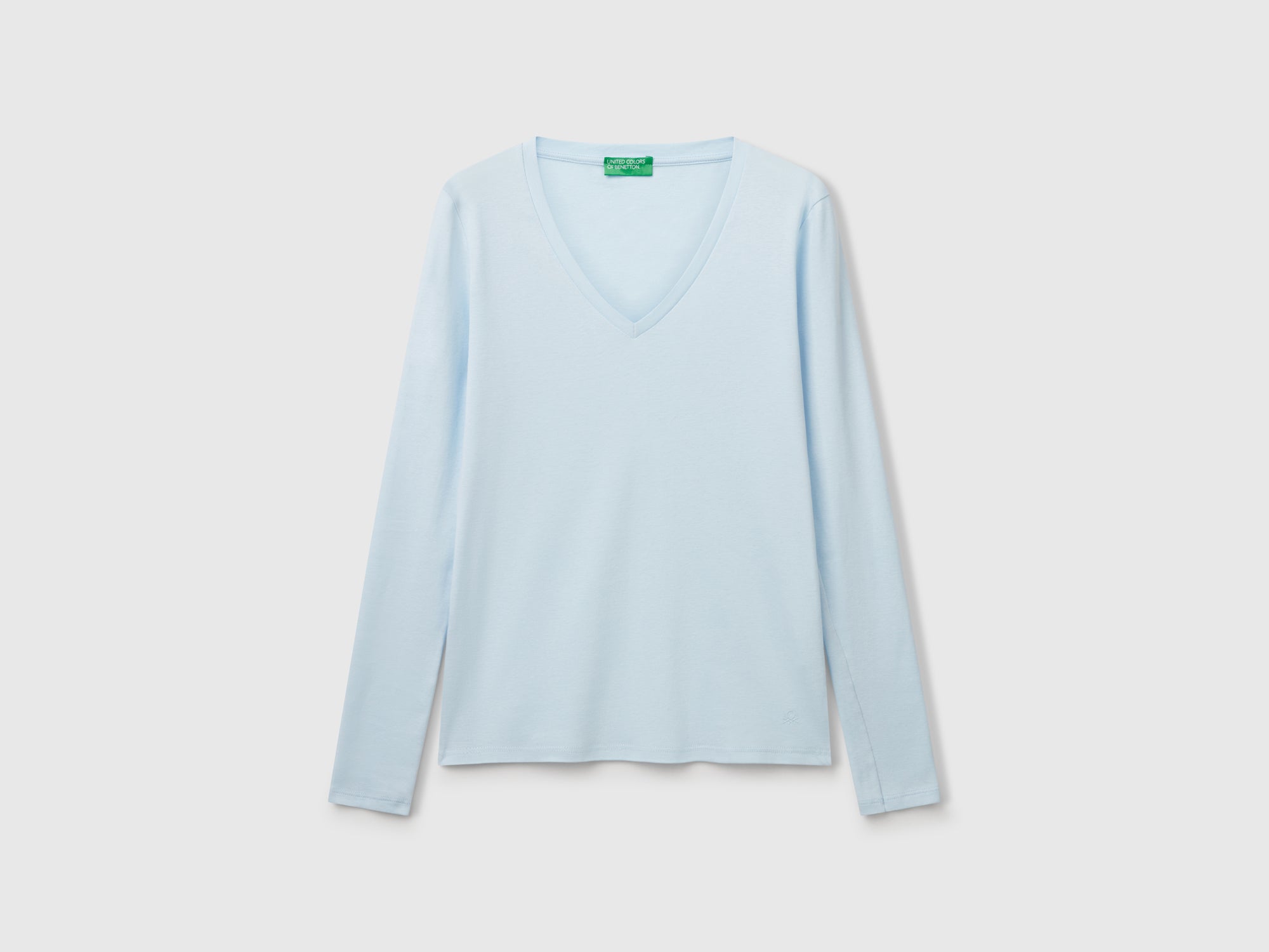 T-shirt a manica lunga con scollo a V da donna celeste | Benetton Outlet T-shirt a manica lunga con scollo a V da donna celeste 2 | Benetton Outlet
