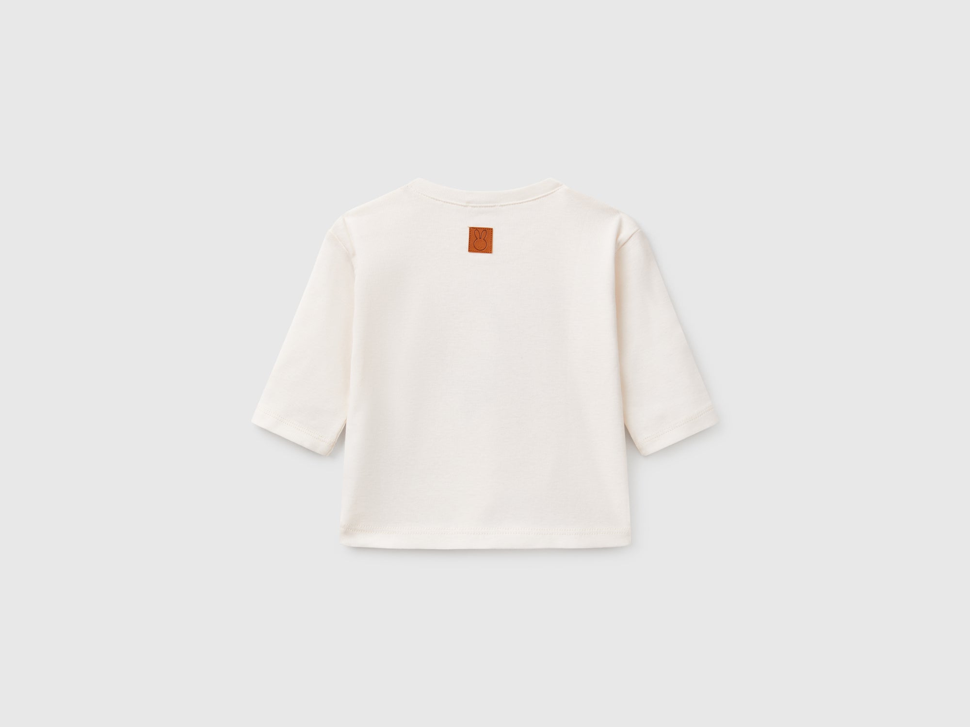 Maglietta girocollo in morbido cotone biologico a costine. Pratica apertura con bottoni a pressione sulla spalla. Tenera stampa animaletti sul davanti. Articolo realizzato con tessuto contenente almeno il 95% di cotone biologico.