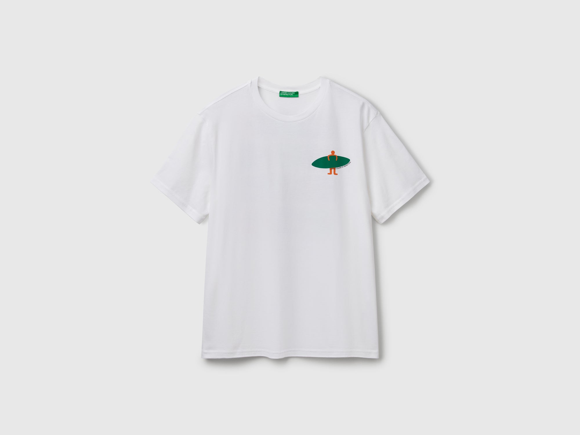 Maglietta girocollo a manica corta, realizzata in cotone biologico per offrire ancora più comfort. Vestibilità rilassata e stampa davanti e dietro. Articolo realizzato con materiale contenente almeno il 95% di cotone biologico.