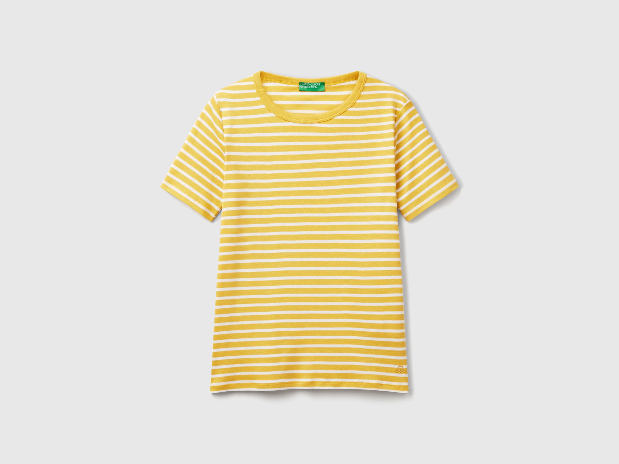 Maglietta a manica corta con fantasia a righe tinto filo. Vestibilità regolare e logo ricamato sul fondo a sinistra. Realizzata in prestigioso cotone a fibra lunga, morbido, resistente e piacevole da indossare. Perfetta per sdrammatizzare un outfit monocromatico.