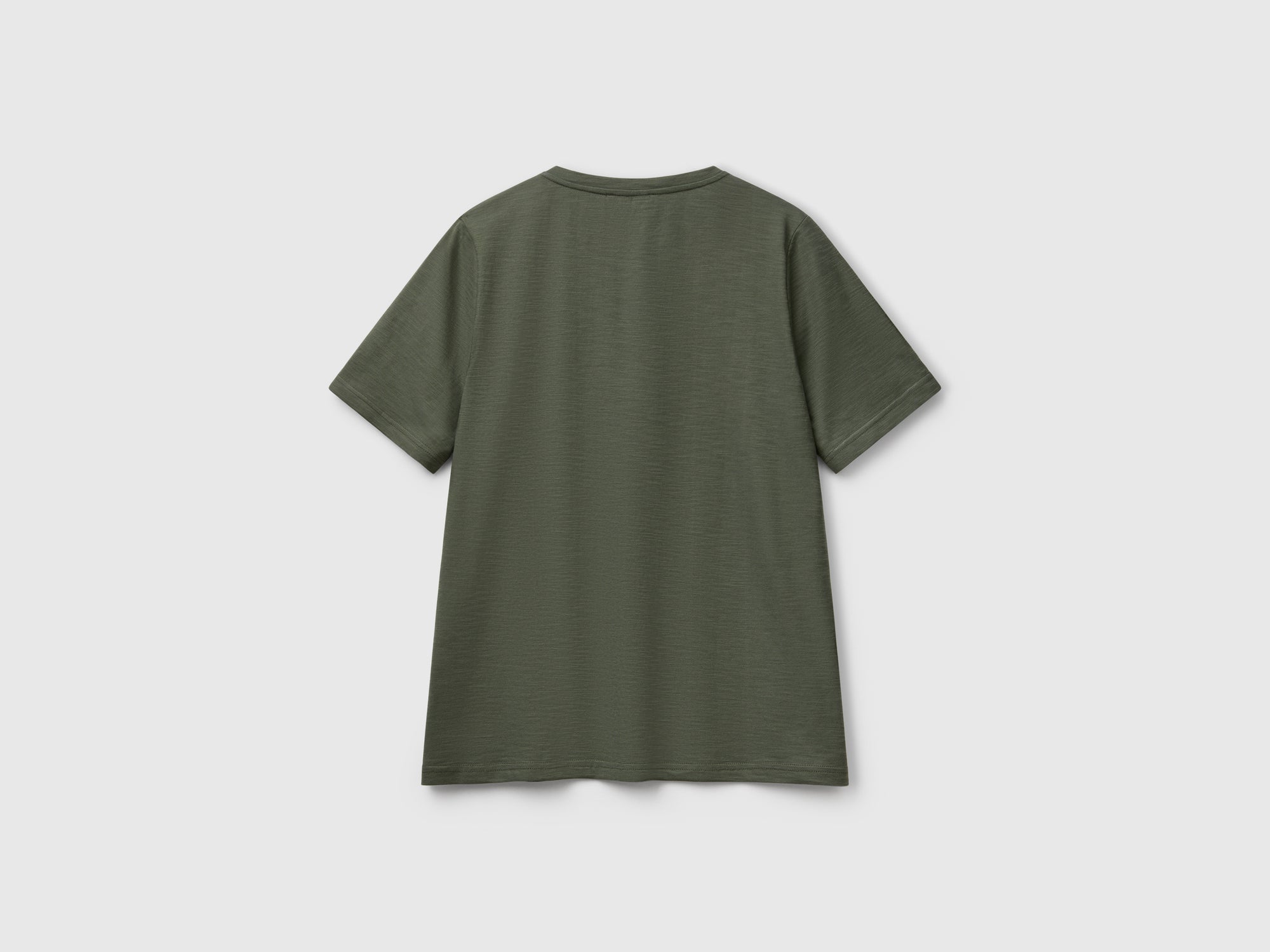 T-shirt girocollo in cotone fiammato da donna verde militare | Benetton Outlet T-shirt girocollo in cotone fiammato da donna verde militare 2 | Benetton Outlet