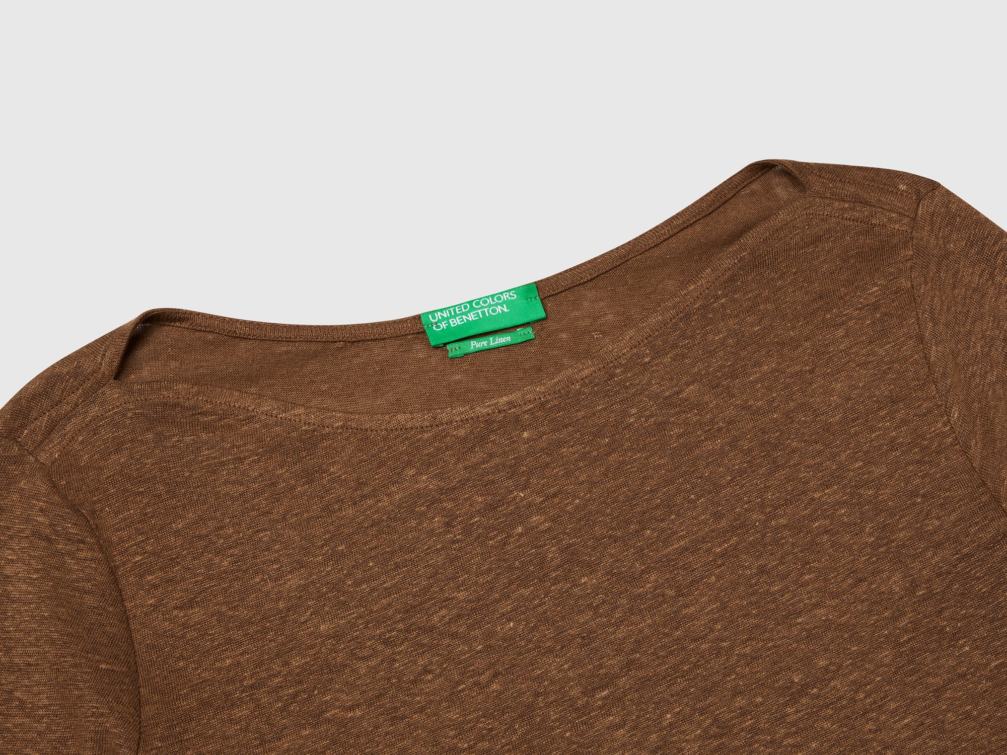 Maglietta in morbido tessuto di puro lino dalla vestibilità regolare. Scollo a barchetta, manica a 3/4 e spacchetti laterali. Fresca e quotidiana, per infiniti abbinamenti.