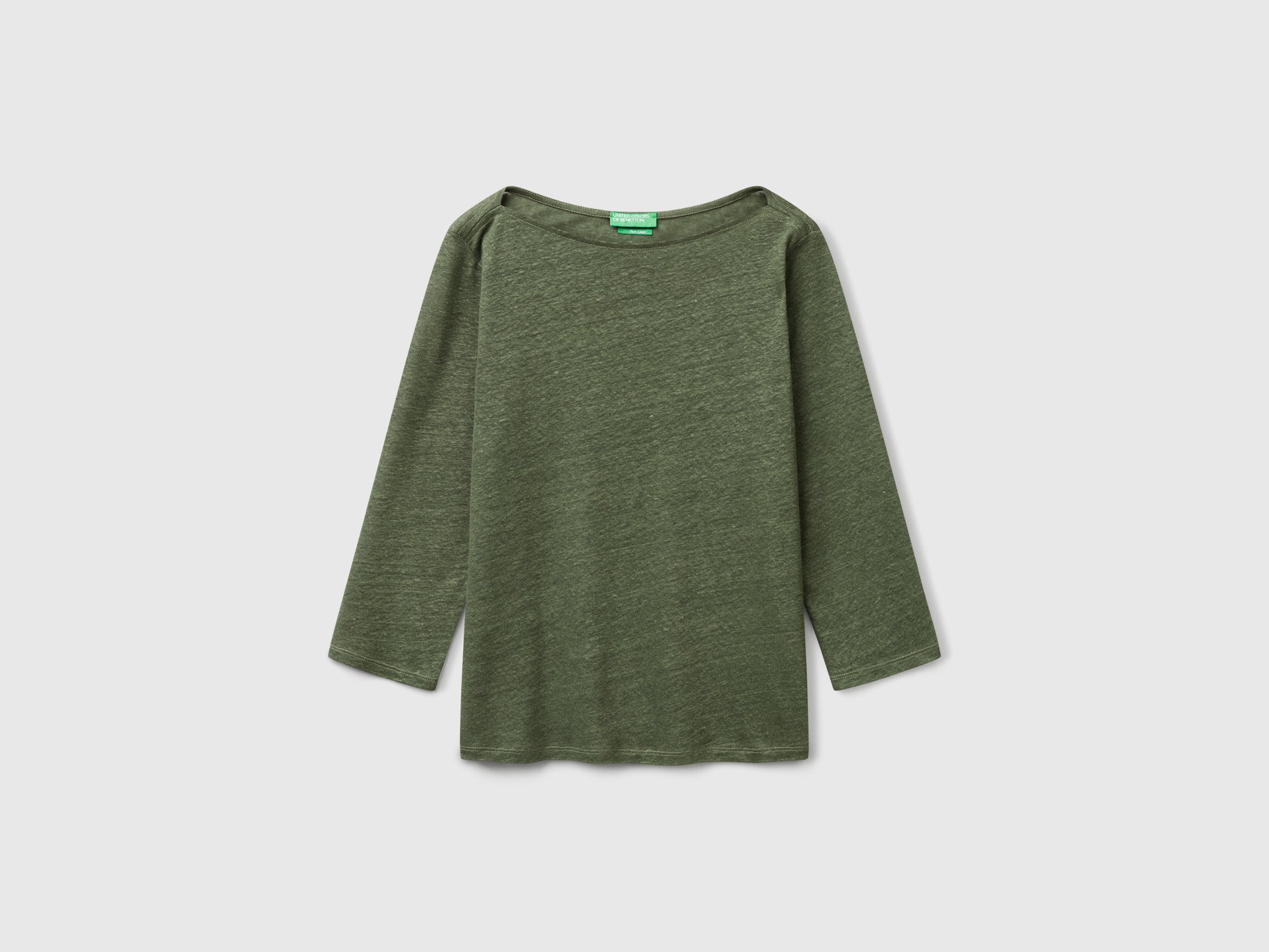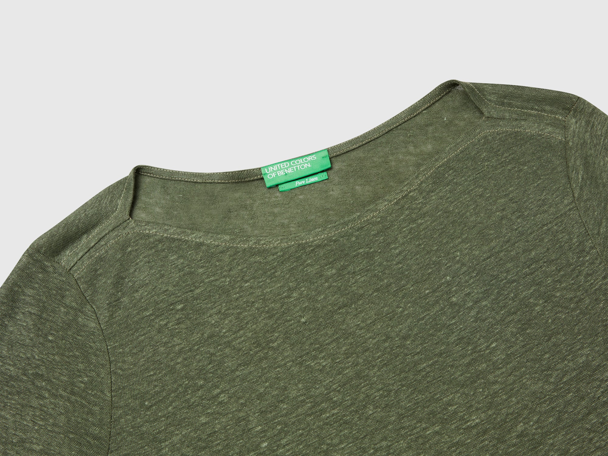 Maglietta scollo ampio in puro lino da donna verde | Benetton Outlet