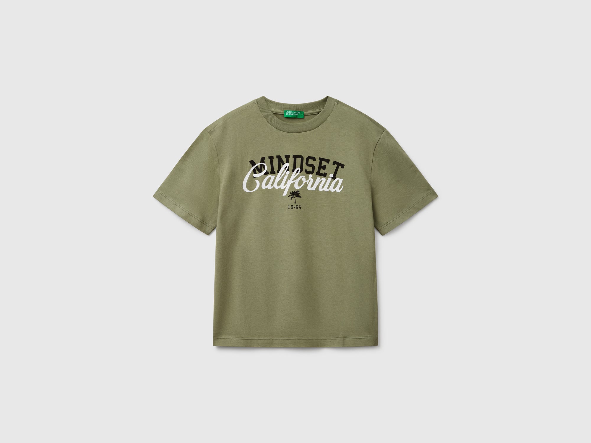 T-shirt con stampa davanti e dietro da bambino verde militare | Benetton Outlet
