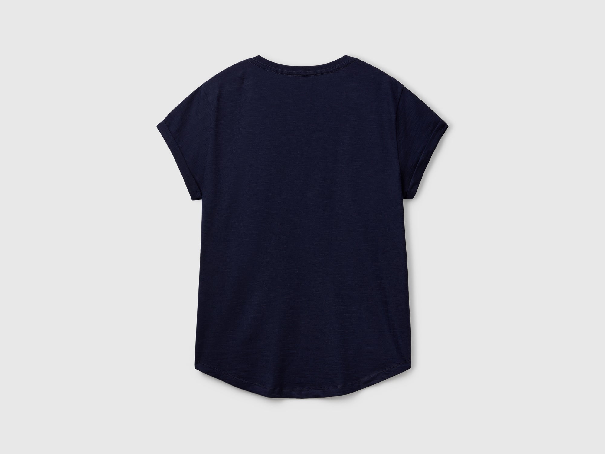 Maglietta a manica corta in puro cotone fiammato. Vestibilità rilassata e ampio scollo rotondo. Fondo stondato più lungo sul retro. Confortevole e versatile.