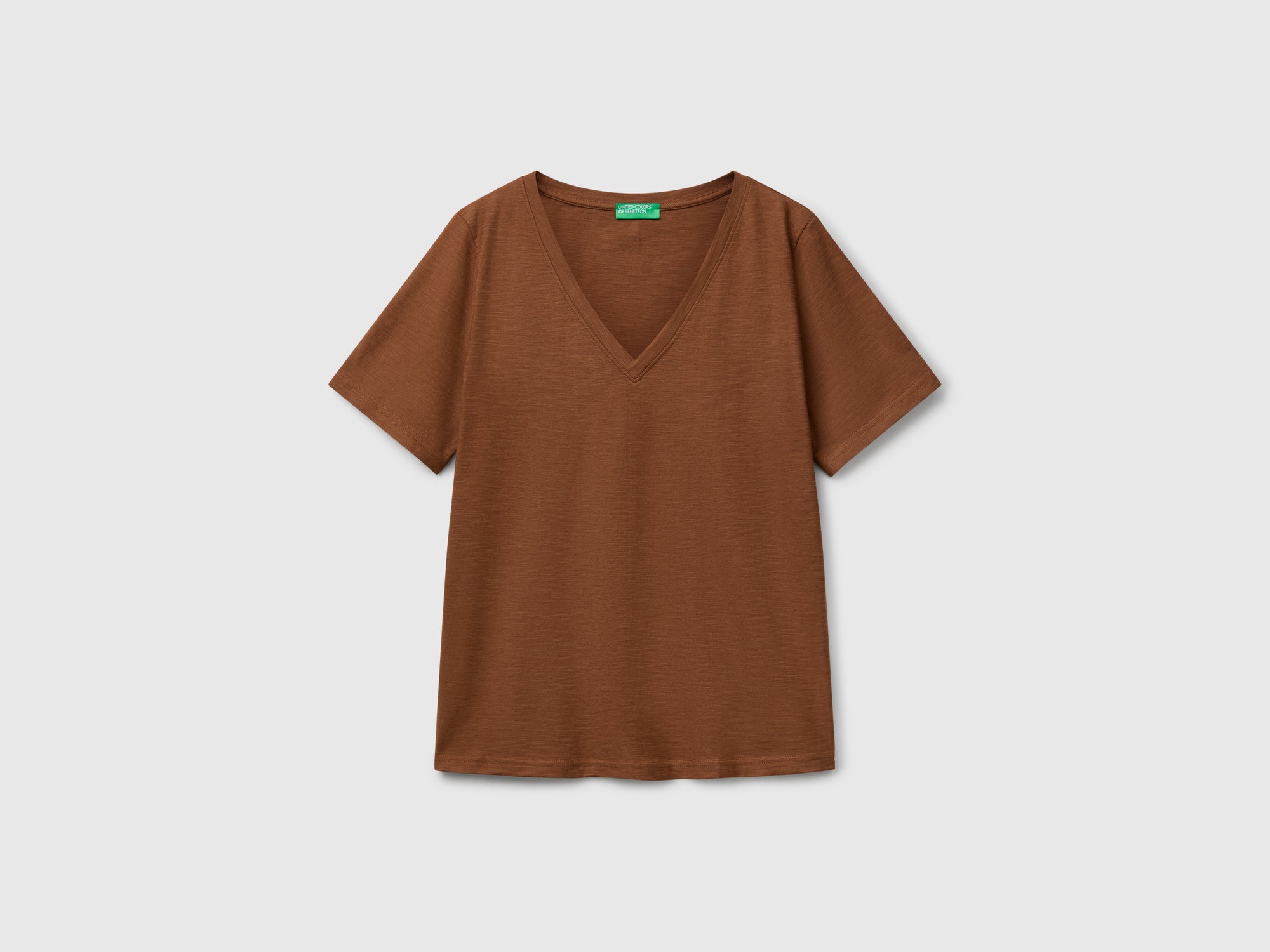 Maglietta a manica corta in puro cotone leggero. Scollo a V e vestibilità rilassata. Fresca e quotidiana, per infiniti abbinamenti.