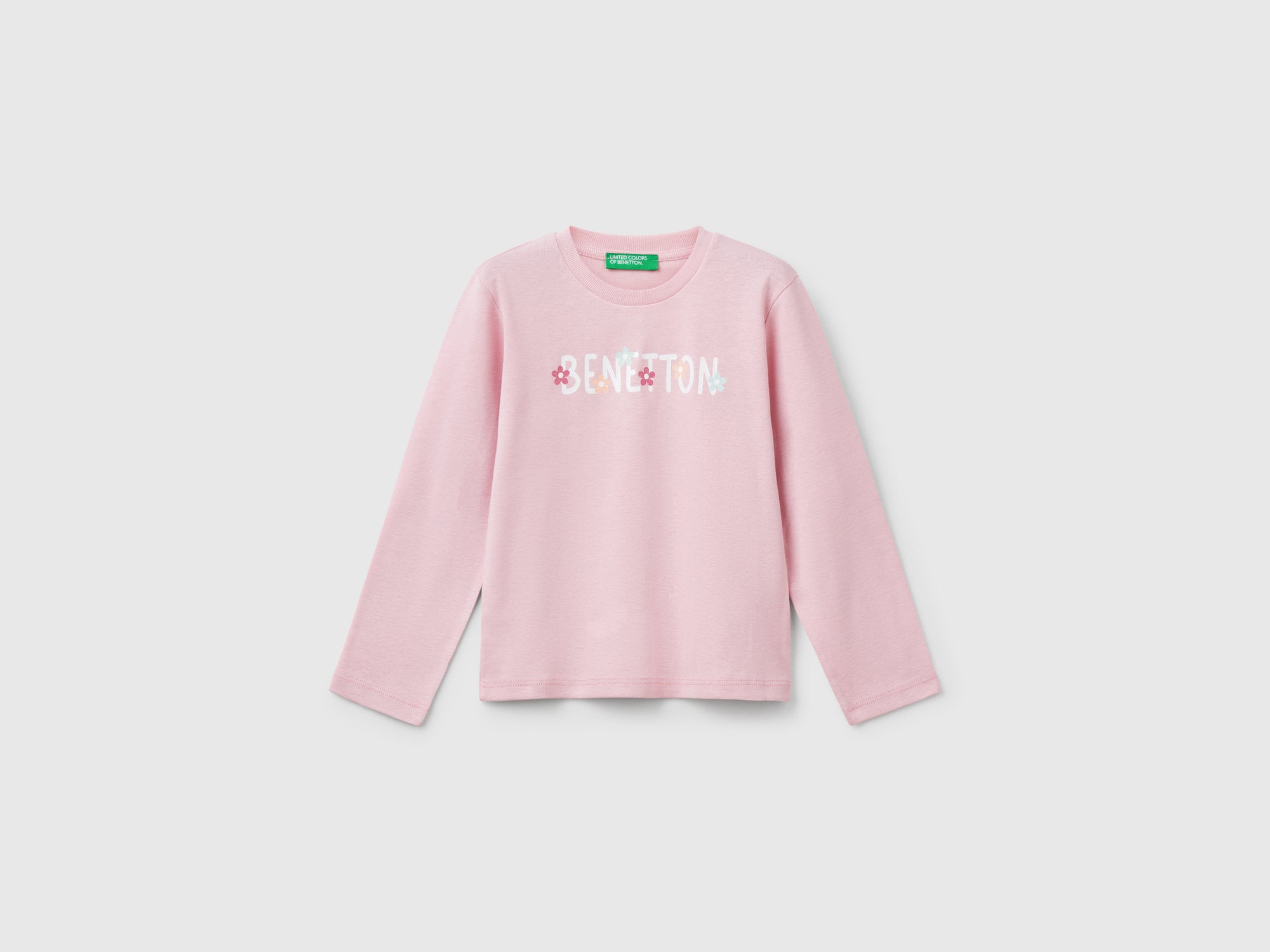 Maglietta girocollo a manica lunga in morbido cotone biologico a costine. Vestibilità aderente e stampa logo glitterata sul davanti. Un capo basico e confortevole sulla pelle. Articolo realizzato con tessuto contenente almeno il 95% di cotone biologico.