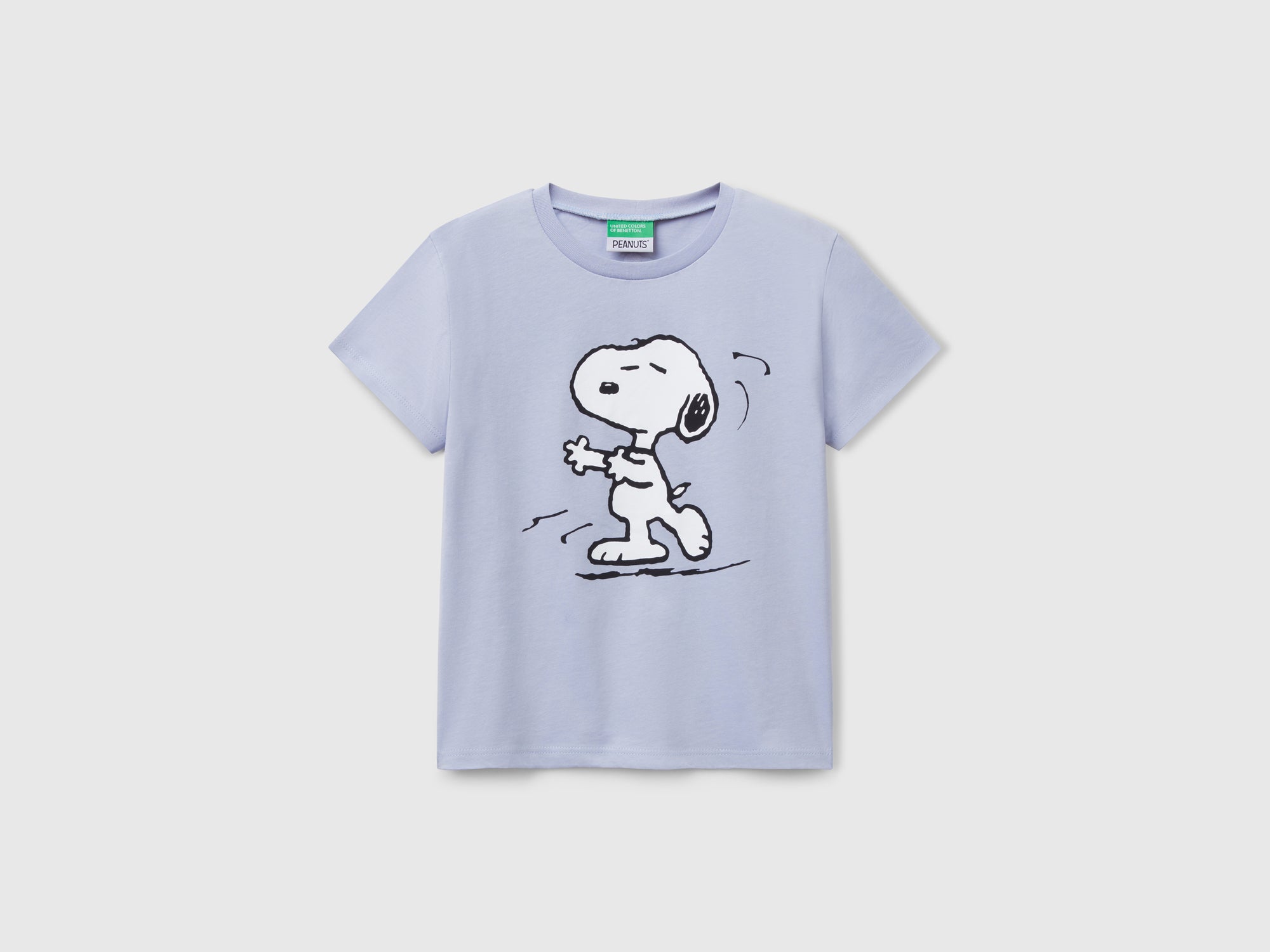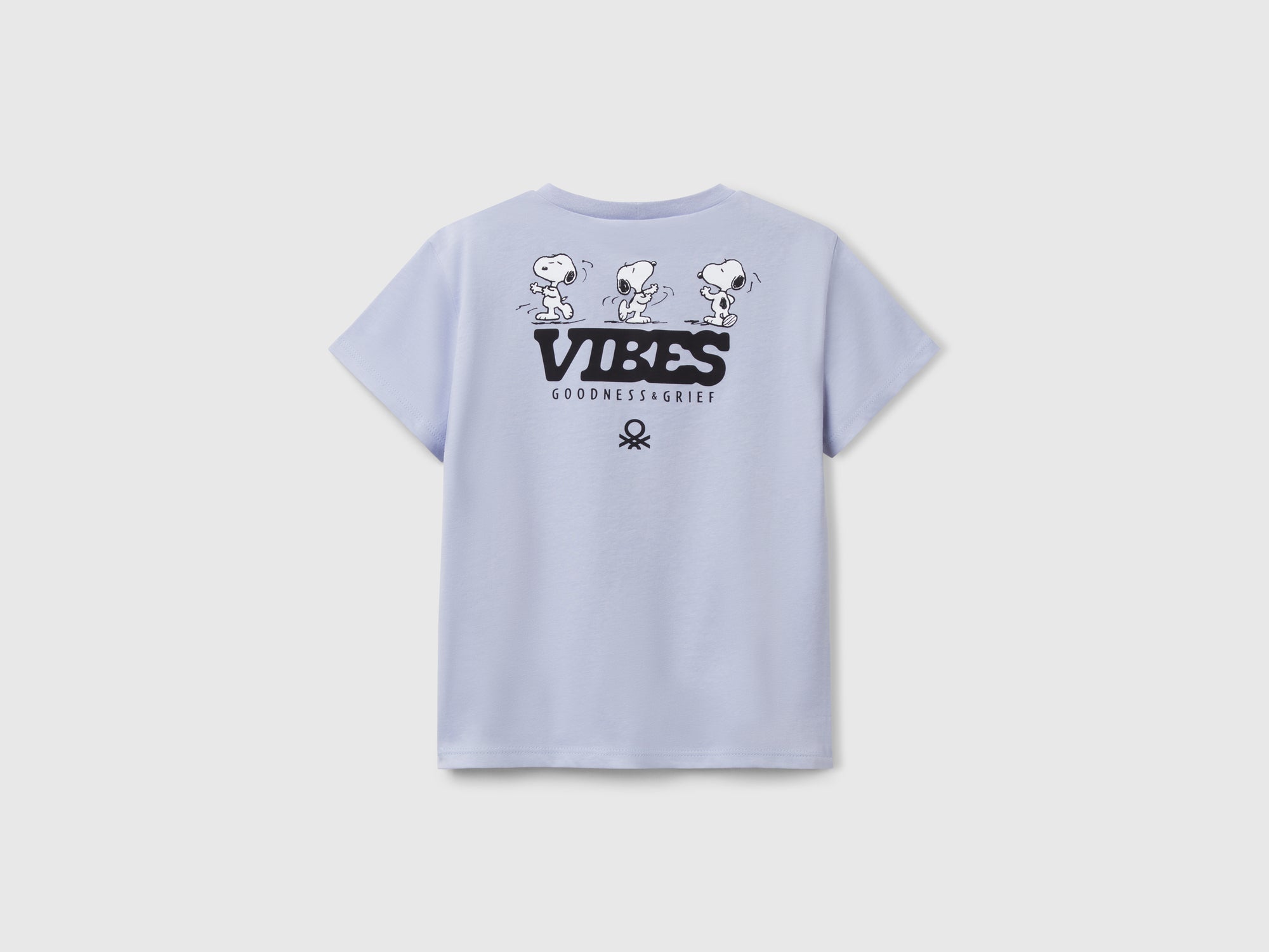 Maglietta girocollo a manica corta in morbido cotone biologico. Vestibilità rilassata e stampa Snoopy ©Peanuts davanti e dietro. Confortevole e divertente.