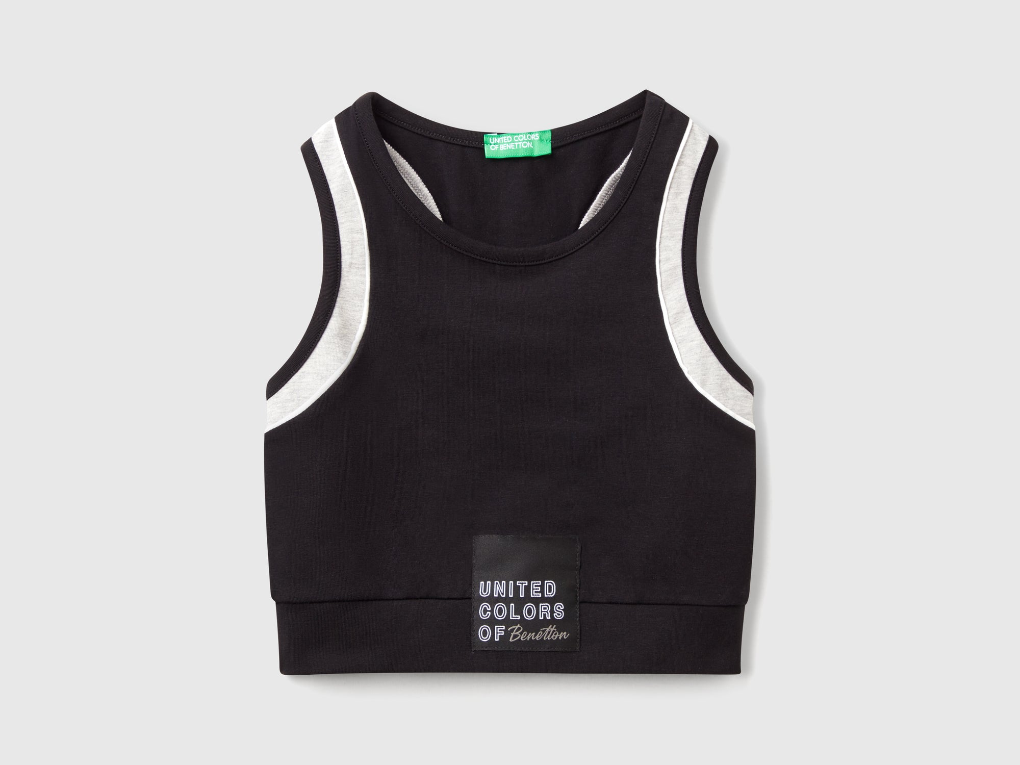 Top in morbido cotone elasticizzato con piping a contrasto. Scollo rotondo e retro in stile vogatore. Ideale per fare sport o per il tempo libero.