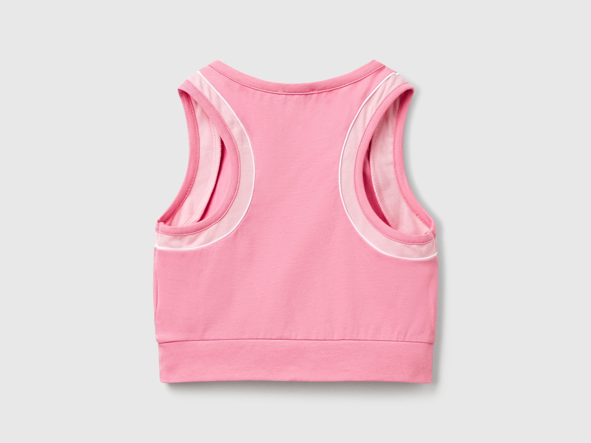 Top in morbido cotone elasticizzato con piping a contrasto. Scollo rotondo e retro in stile vogatore. Ideale per fare sport o per il tempo libero.