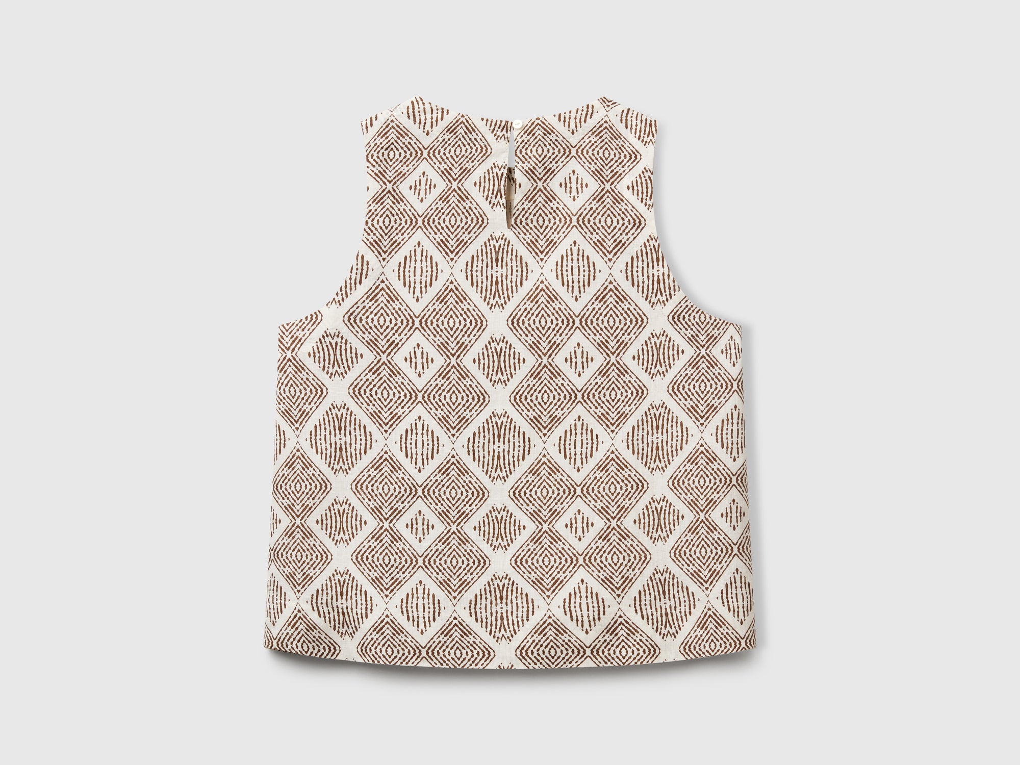 A-line tank top with a round neckline and a keyhole button fastening at the back. All-over print. Made from 100% European-grown linen. 100% linen; All-over print.