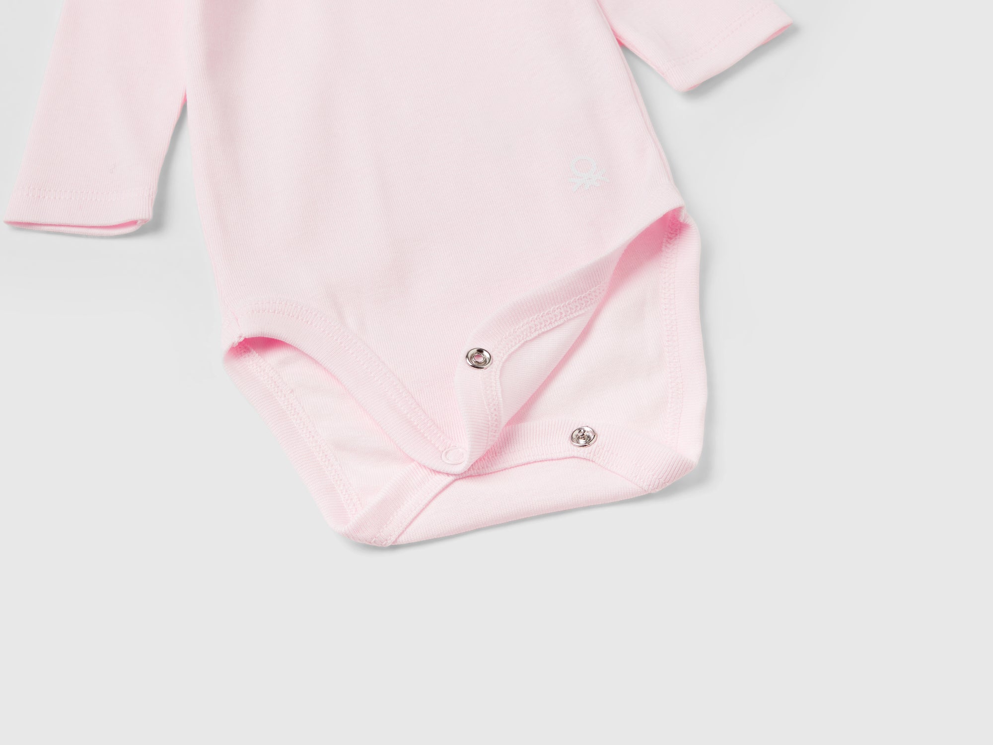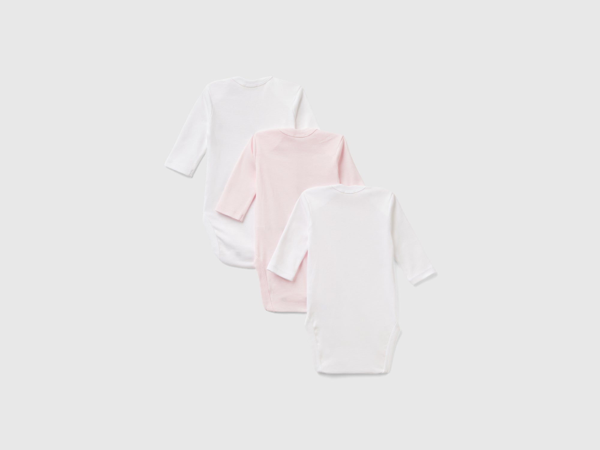 Set composto da tre body a manica lunga in puro cotone biologico. Apertura con bottoni automatici sul cavallo. Piccolo logo a contrasto stampato sul lato sinistro. Due body bianchi, uno rosa. Articolo realizzato con materiale contenente almeno il 95% di cotone biologico.