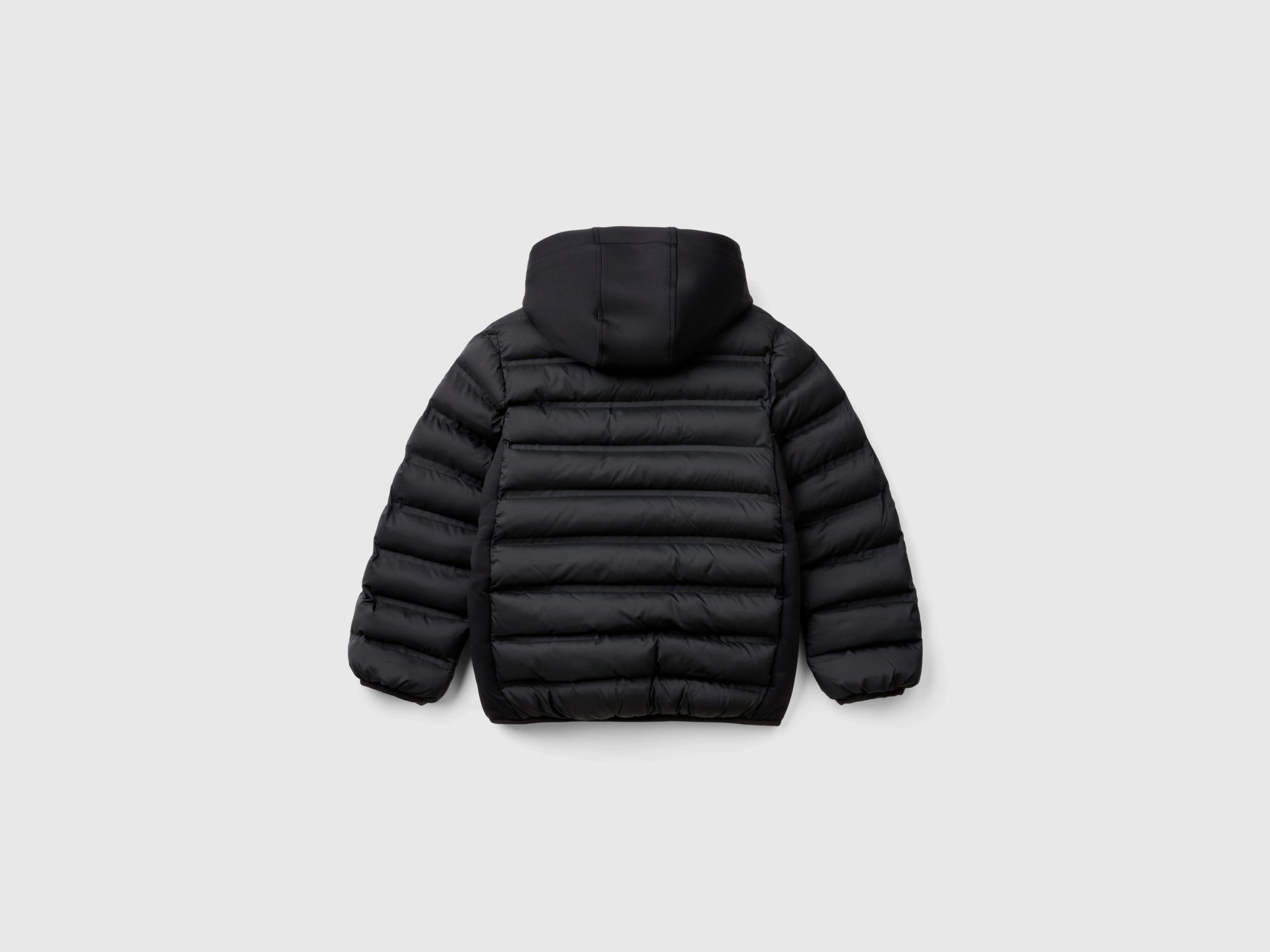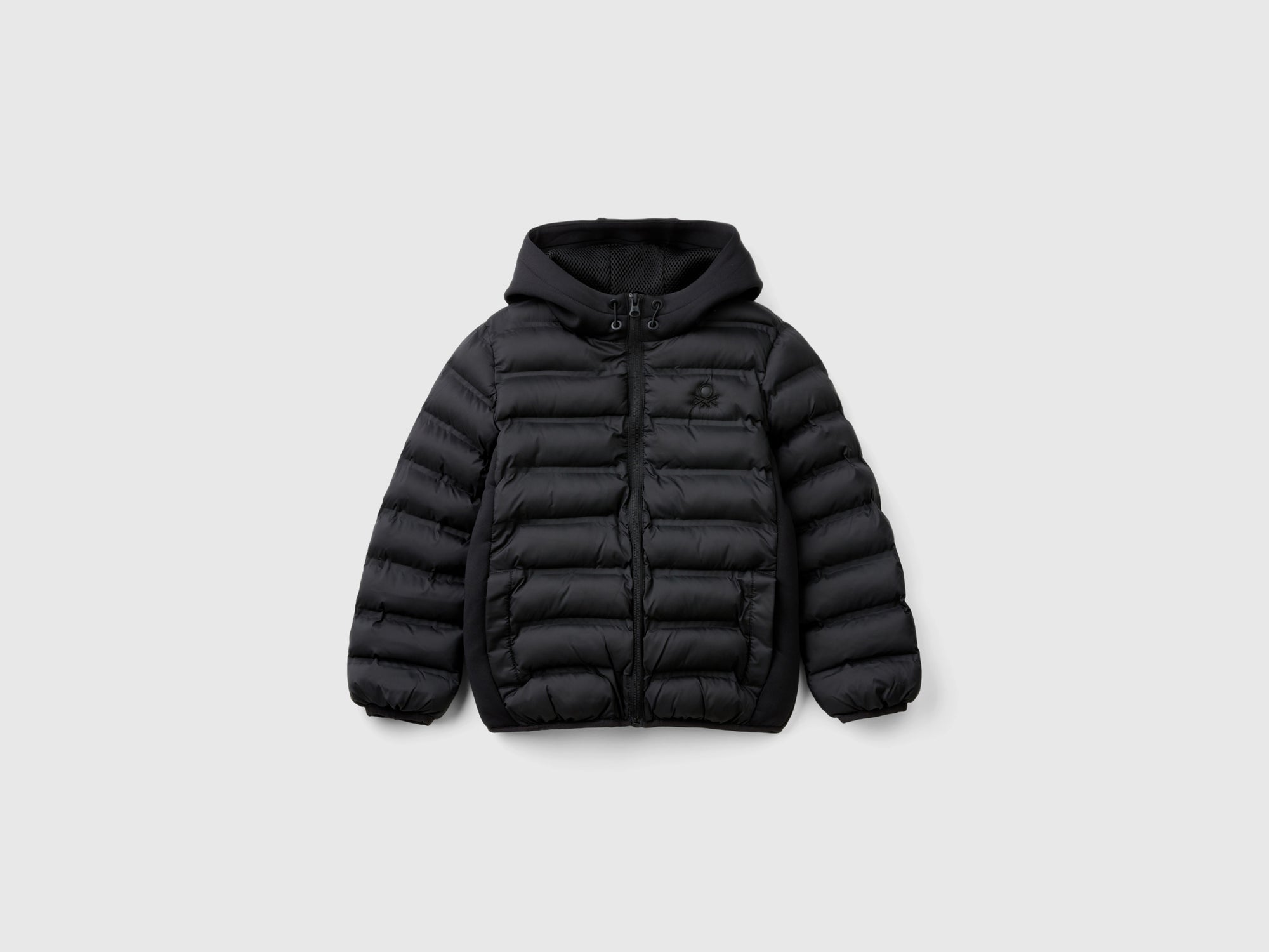 Giubbotto imbottito con cappuccio e logo da bambino nero | Benetton Outlet