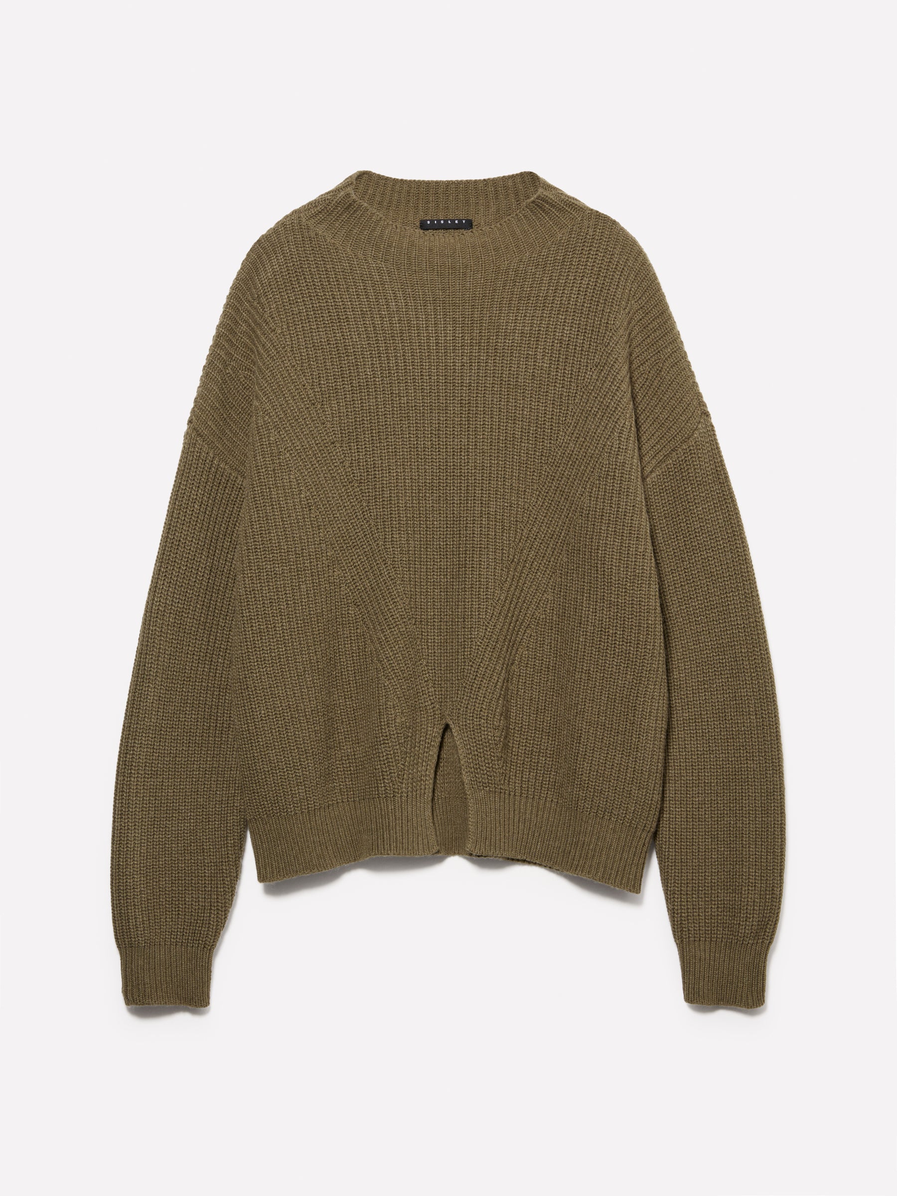 Maglia verde in morbido tessuto di misto lana e viscosa. Collo a cratere, maniche lunghe con spalla scesa e dettaglio di spacco sul centro davanti. Questo capo è stato lavorato in uno stabilimento in Croazia che riutilizza circa il 60% delle acque di scarico, riducendo il consumo di acqua usata nel processo di tintura. Per info: https://wasatex.eu