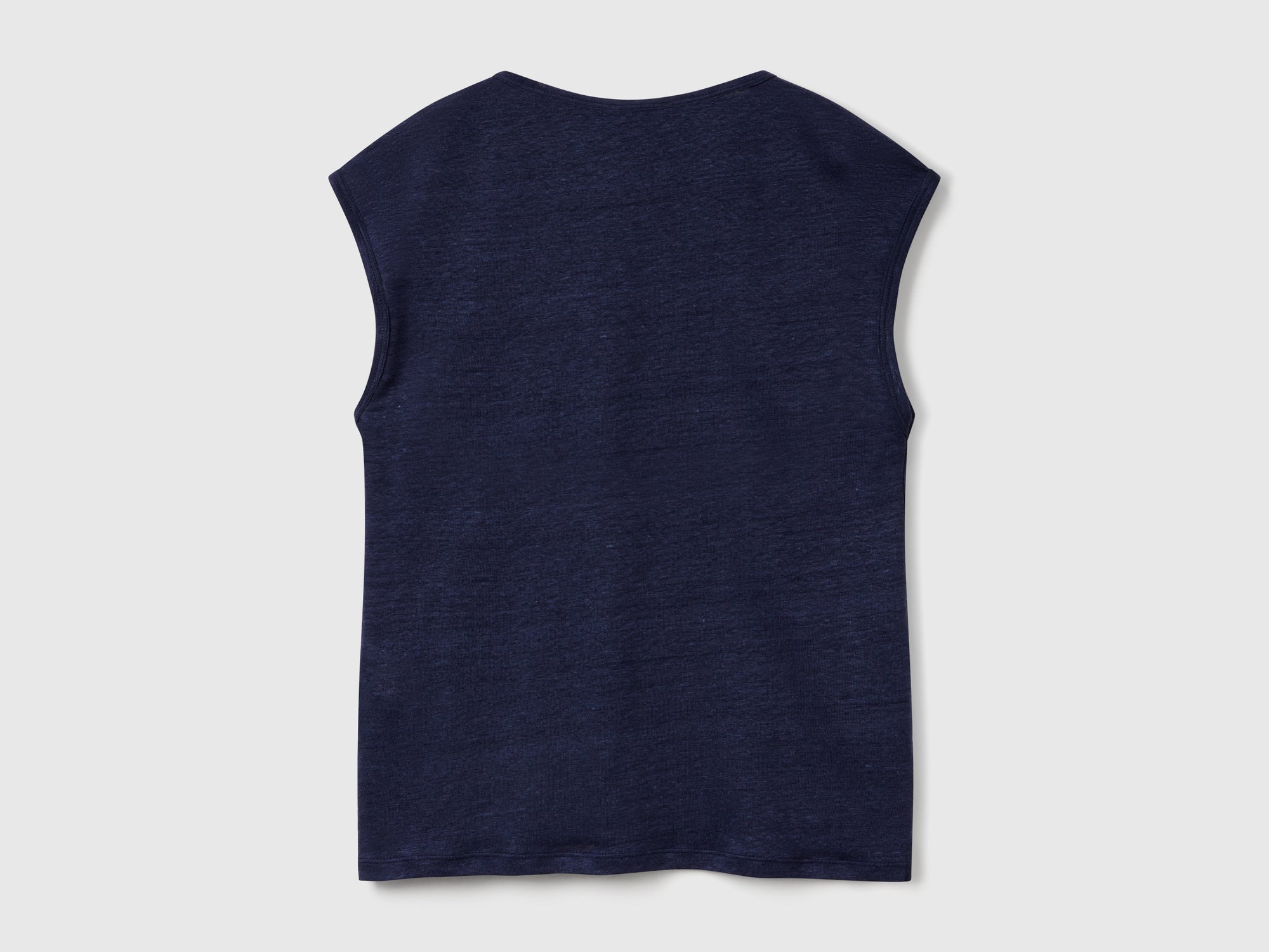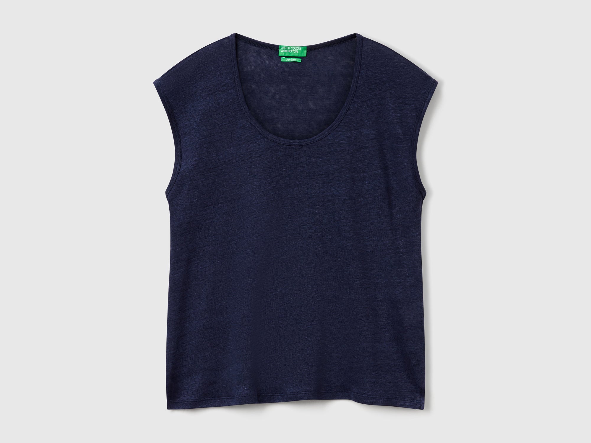 Maglietta scollo ampio in puro lino da donna blu scuro | Benetton Outlet Maglietta scollo ampio in puro lino da donna blu scuro 2 | Benetton Outlet