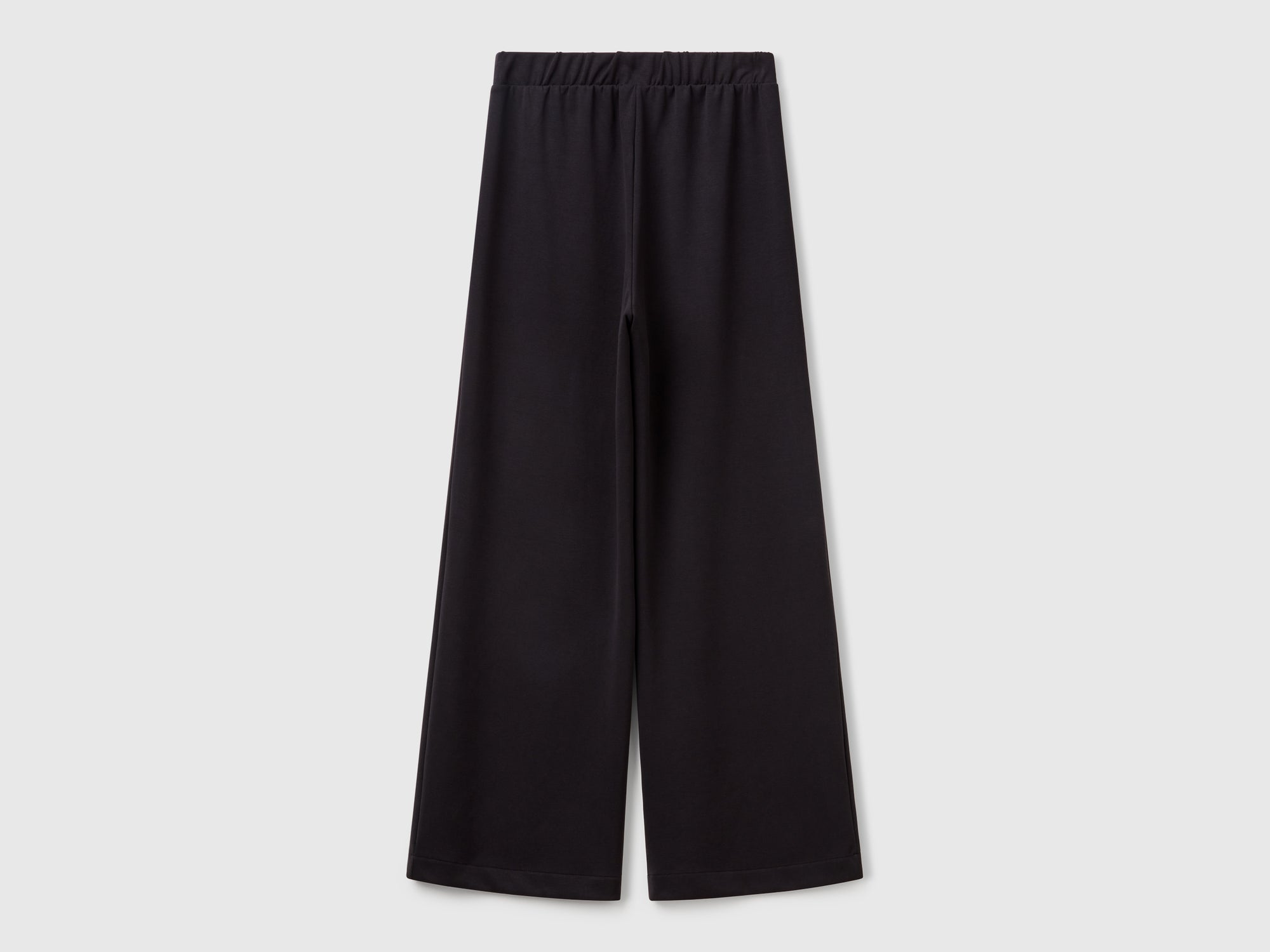 - Main features: Long trousers in soft, stretch Tencel™ MODAL with wide legs. Elasticated waistband at the back, logo print on the front. This product contains at least 30% TENCEL™ MODAL fibers from controlled or certified wood sources. TENCEL™ is a registered trademark of Lenzing AG. Interlock of Tencel™ stretch MODAL; Water-based print