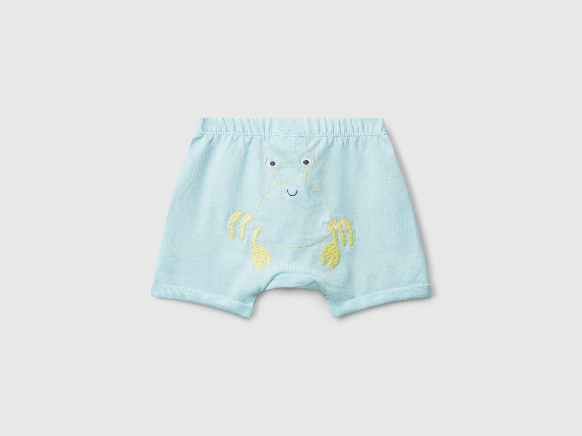 Pantaloni corti in puro cotone biologico. Pratico elastico interno in vita con coulisse decorativa e maxi patch applicata sul retro. Divertenti e delicati sulla pelle. Articolo realizzato con tessuto contenente almeno il 95% di cotone biologico.